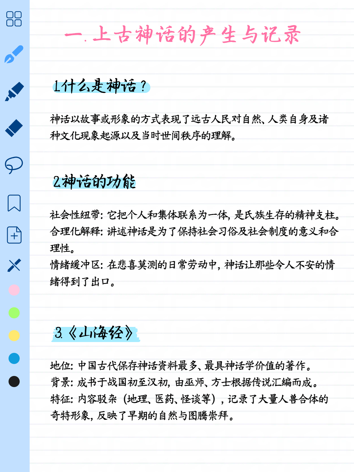 我们今天要讲的对应的是袁行霈《中国文学史》第一卷第一章,上古神话部分,前两期我们已经理顺了中国文学千年演进的脉络和先秦文学的发展脉络,后面的播客将开始涉及先秦文学的重要作品,例如《山海经》《诗经》《楚辞》,史传和诸子散文,都会分章讲解,我将根据自己多年的学习笔记,文本阅读经验,结合我了解的,大家对文学史难理解的地方来准备我的播客内容,希望给你带来切实的收获和帮助。