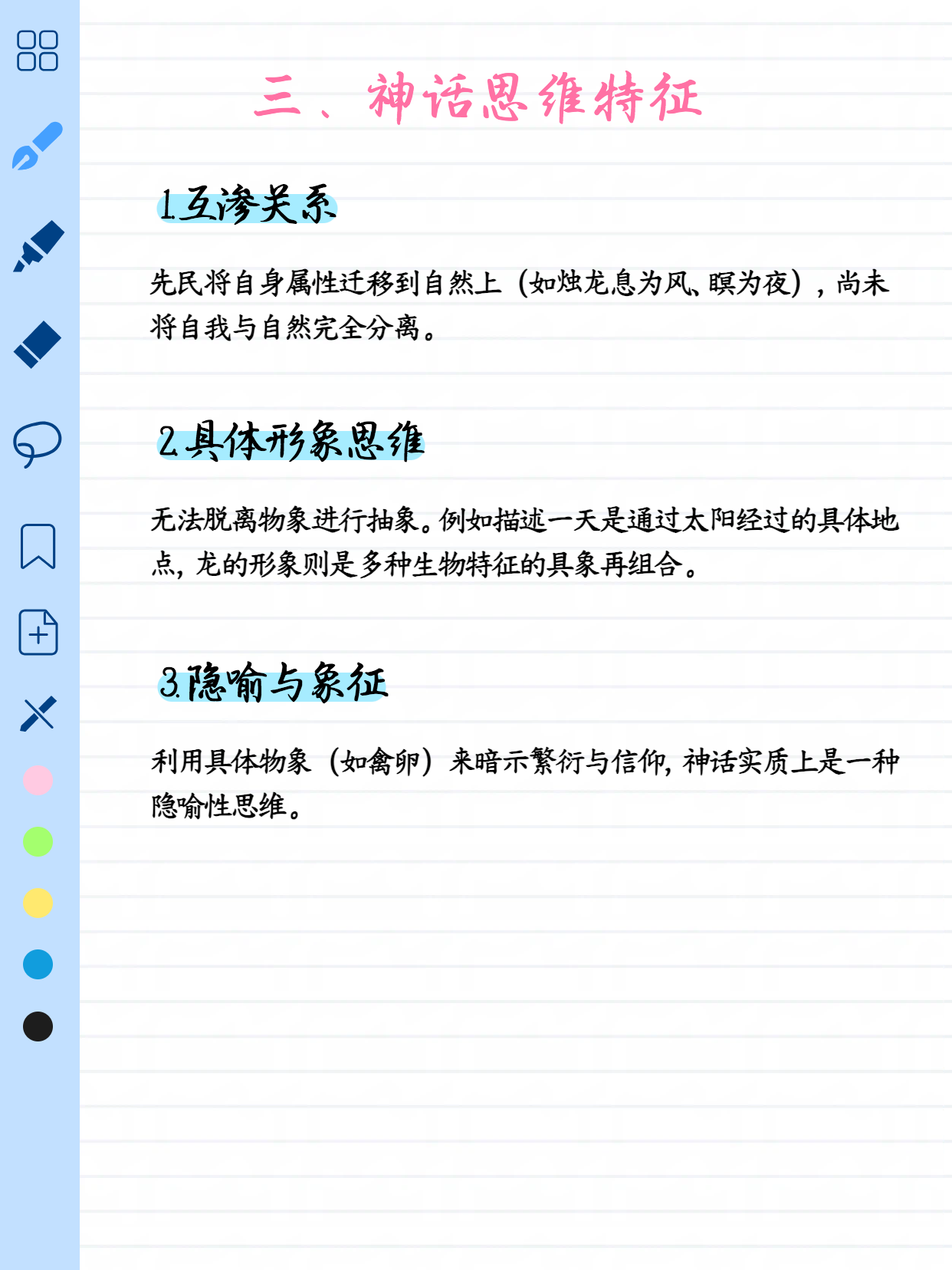 如果要用一个诗意的方式描述神话,我觉得它是我们民族在童年时代,对着浩瀚星空发出的第一声深情呢喃。从学术角度来看,神话并非虚妄的胡言乱语,它是远古先民在生产力极其低下的环境,为了理解自然规律与世间秩序,进行的一种“感性认知” 。在那个思维尚未被逻辑彻底接管的时代,先民以己观物、以己感物,让大自然不再是冰冷的客体,而是充满了活泼灵魂与意志的生命体。
