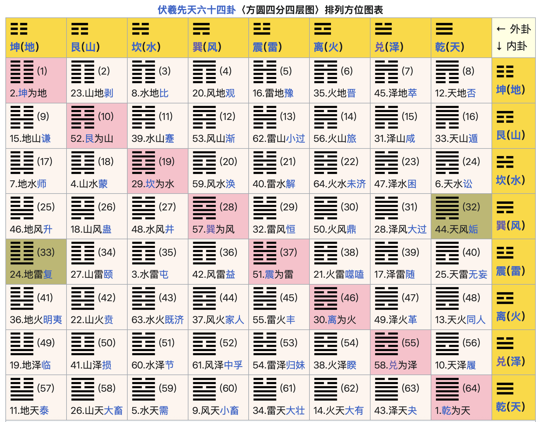 64卦图示(节目里面的八卦就是图中粉色的八个卦象)