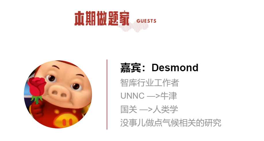 本期节目,我们邀请到了一位在国际关系与社会人类学的边界上推敲气候问题的研究者Desmond。从联合国安理会的气候辩论现场,到国际关系学科最近的“人类世”转向,谈谈气候问题如何超越政治博弈与学科边界,颠覆我们对“安全”“敌人”和“边界”的传统定义与想象。在高温、暴雨、洪水带来的危机迫在眉睫之时,我们如何重新想象气候韧性与全球治理的未来?中国又如何用“气候韧性”与“生态文明”建构自己的治理叙事?