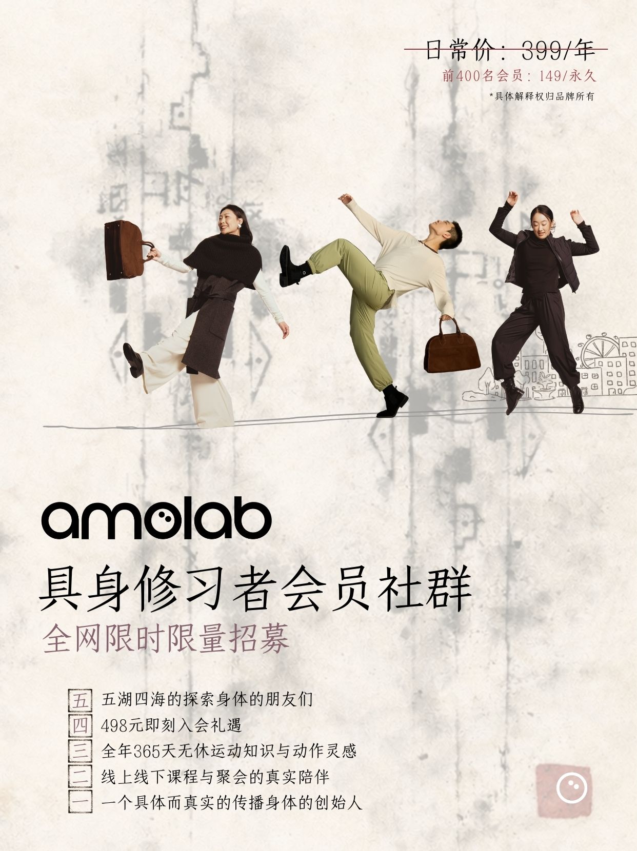 amolab创始人,前摩根大通消费品投行ED,13年现代舞热爱者,身体智慧传播者。小红书创业故事:歪三三-amolab 身体哲学分享:歪的身体诗