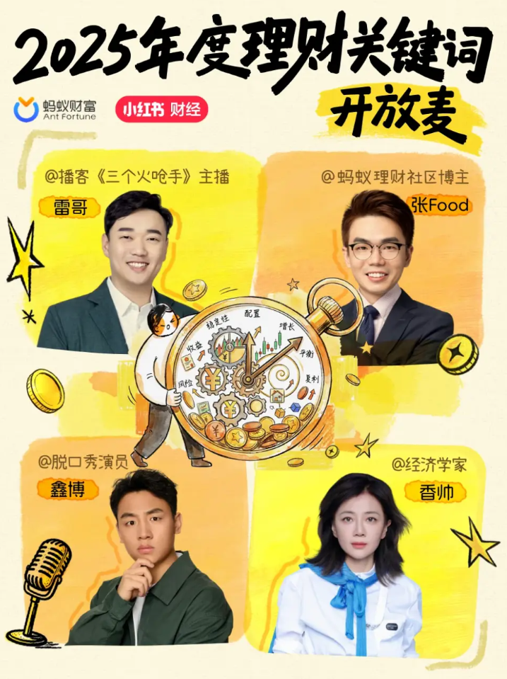 本期节目,我们将蚂蚁财富与小红书携手发起的2025年度理财关键词的征集和盘托出。上万理财人提名靠前的十个热词——AI叙事理财、存款搬家、黄金血脉觉醒、理财特种兵、钱包主理人、新三金、A股慢牛、复利时代、提前养老规划、新消费崛起——勾勒出这一年的金钱脉搏。而其中五个词汇,凭借高票当选了年度关键词,具体是哪些?答案就藏在本期开放麦的欢声笑语中。