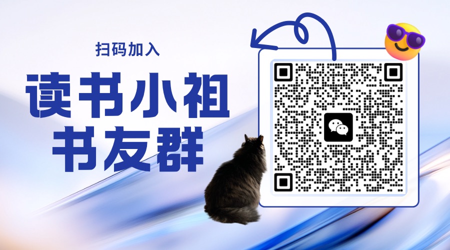 可以扫下面的二维码加入书友群,也可以在🍠上搜索账号:读书小祖。