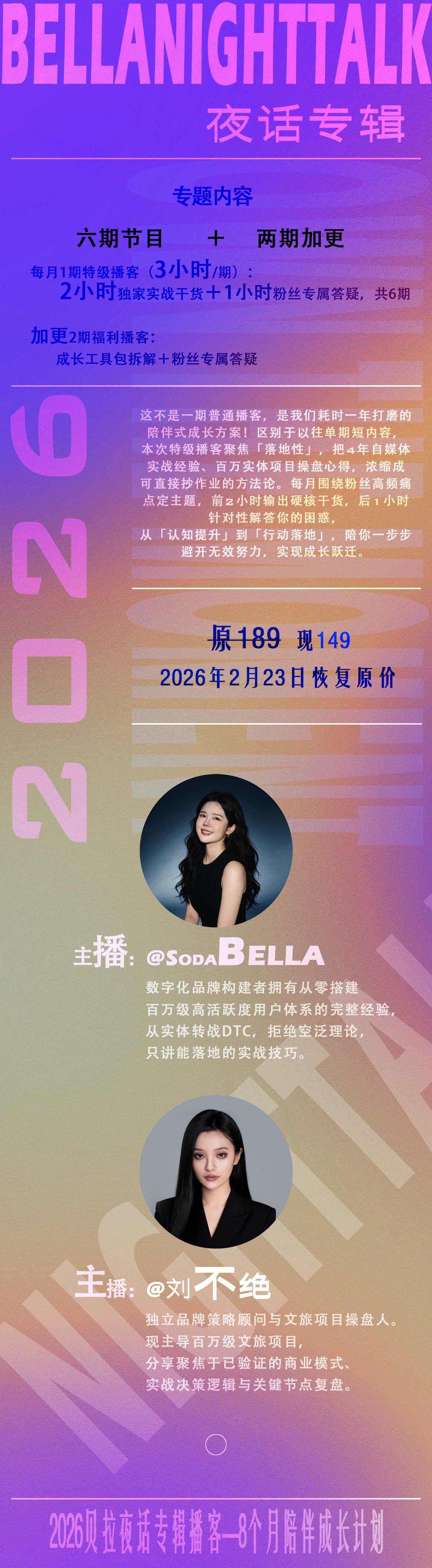 付费节目更新周期为2026年1月到2026年8月,涵盖6期正片+两期加更,早鸟价格149元(2月23日之后恢复原价189元),购买后可永久收听后续所有更新,再也不用担心错过关键内容。