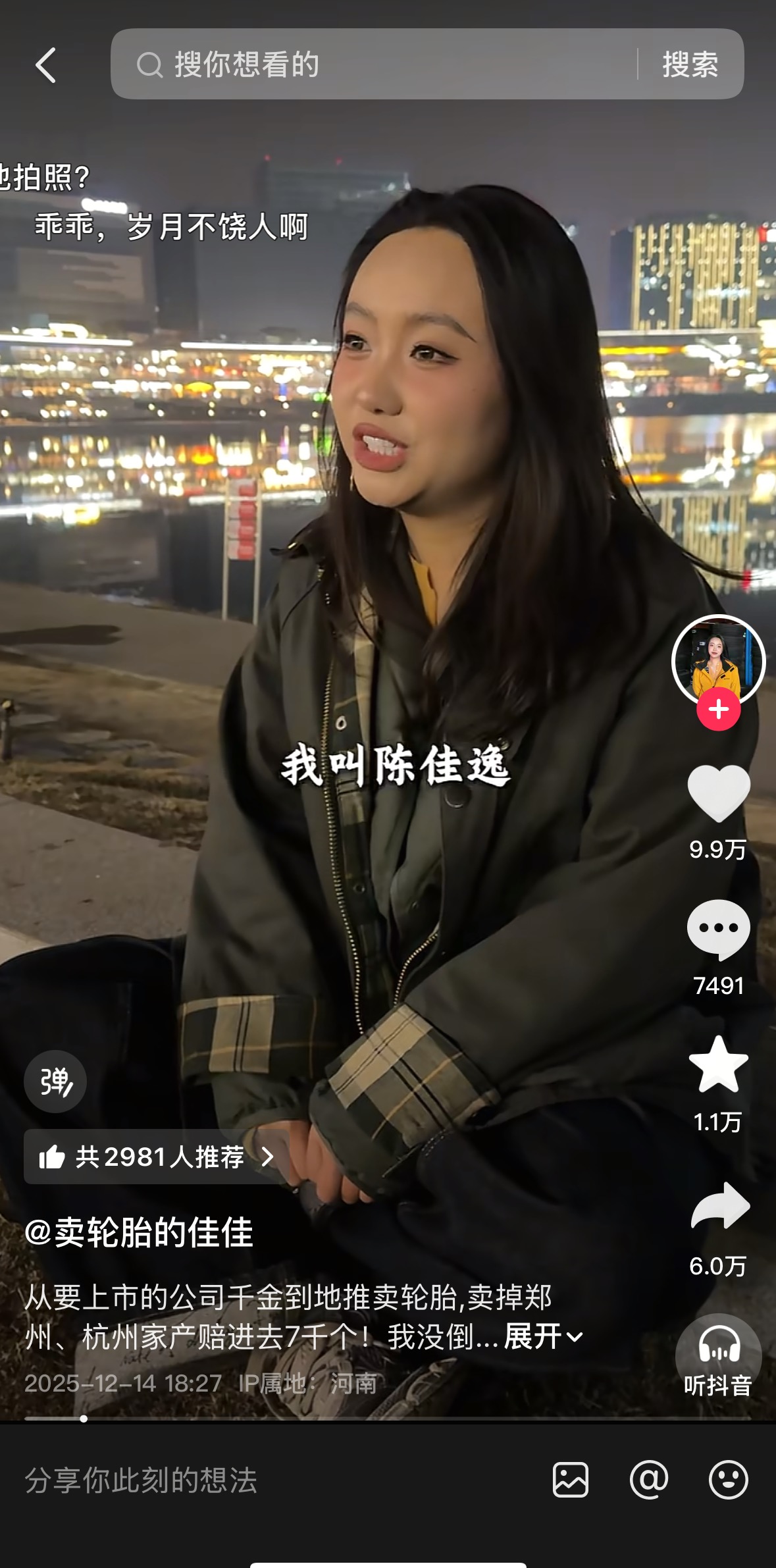 🎧本期节目对谈的嘉宾,是近期河南短视频届最火的人物之一——卖轮胎的佳佳。一条视频十万点赞千万播放,她的人生剧本,前二十页写着‘公主’,后面却突然被命运翻页,改写成了‘战士’… 主播与她的在气温零度的轮胎仓库对谈,不仅眼眶闪耀着星光,内心也被火焰点燃。 从酒吧的霓虹,到餐饮的油污,再到轮胎的橡胶味,这个转变的弧度有多大,她内心的风暴就有多剧烈。我们聊的不仅仅是一个短视频账号爆火的经过,更是一个女性,如何在废墟上重建自我认同,并亲手为这份认同找到坚硬的人生意义。让我们一起来听听@卖轮胎的佳佳 在“谷底开花、海底望月”的故事。