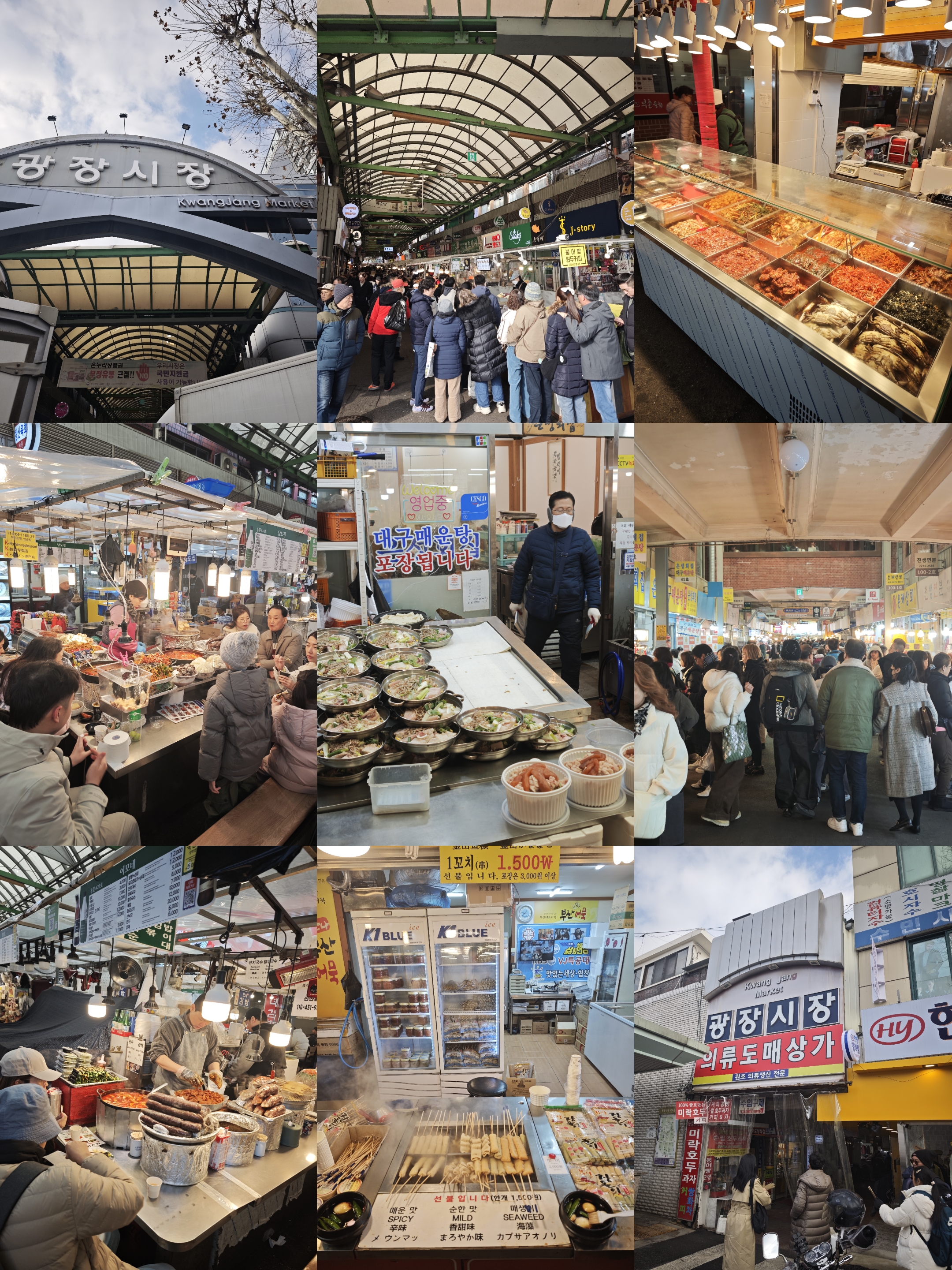 广藏市场是吃货的天堂,小吃摊的香气勾得人走不动路。直奔昌信生拌牛肉辣炒年糕,Q弹的生拌章鱼在嘴里跳舞,牛肉汤饭暖心暖胃,辣炒年糕裹满酱汁,一口下去,幸福感爆棚。