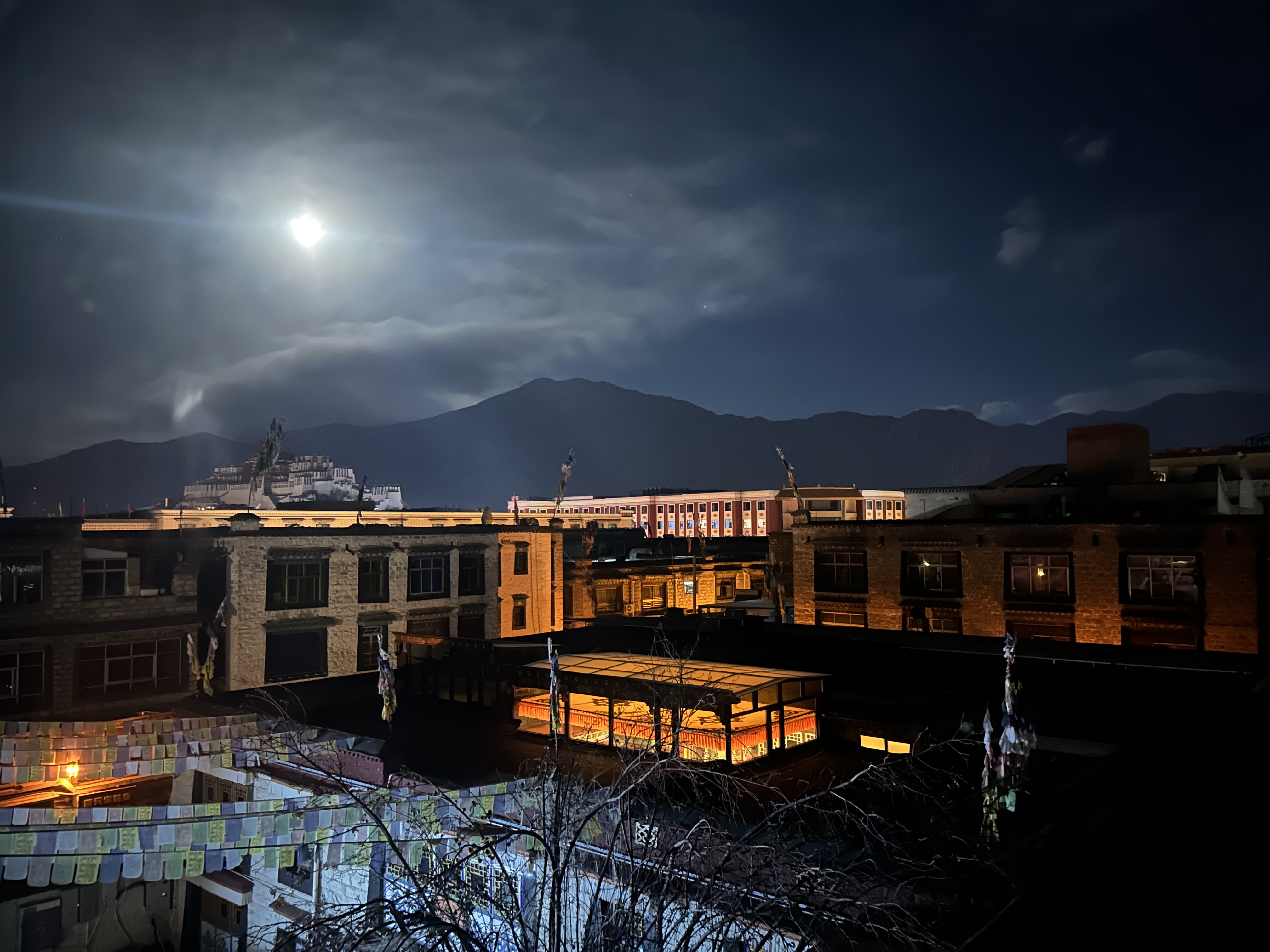 特别喜欢这个画面,清冷的满月悬挂在布达拉宫之上
