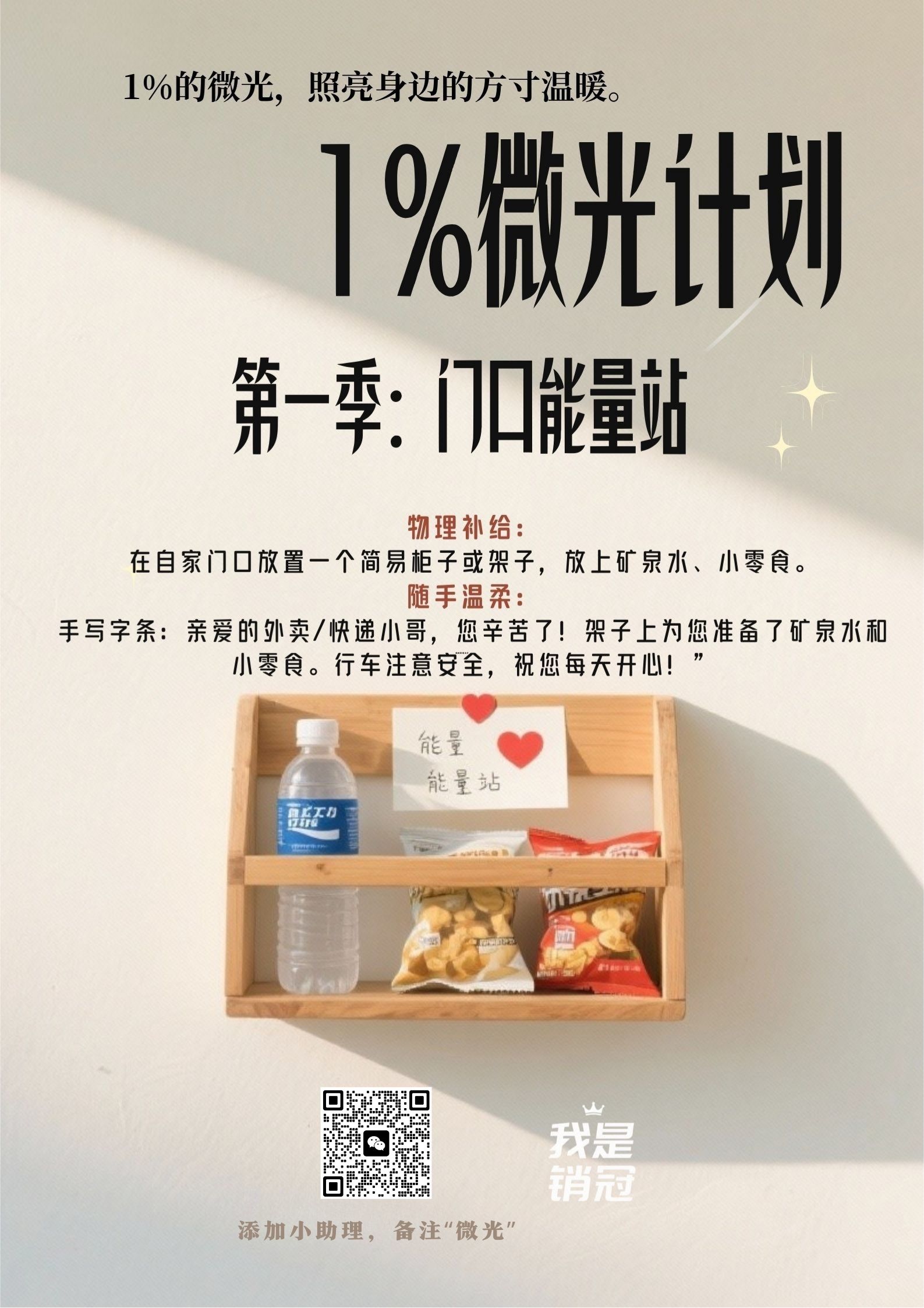 受 Carol 妈妈故事的启发,我们正式推出 【1%微光计划】。你可以从在门口为外卖小哥放一瓶水、一张字条开始,用这件“确定的具体小事”开启你的 2026。