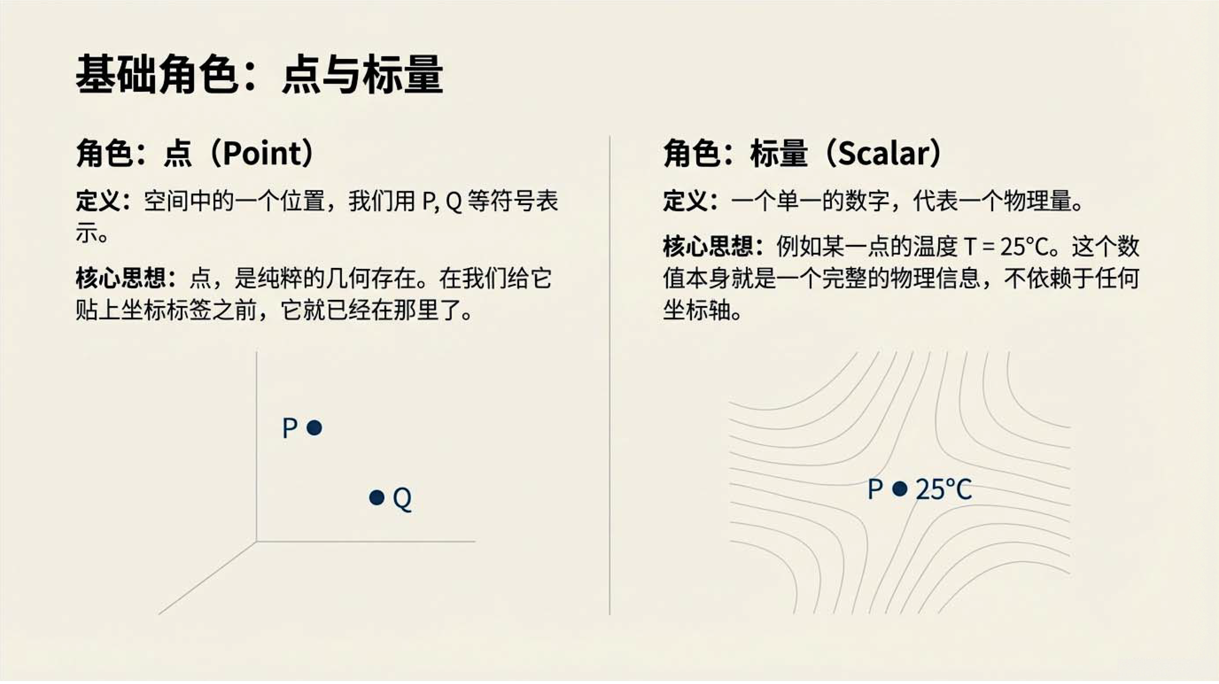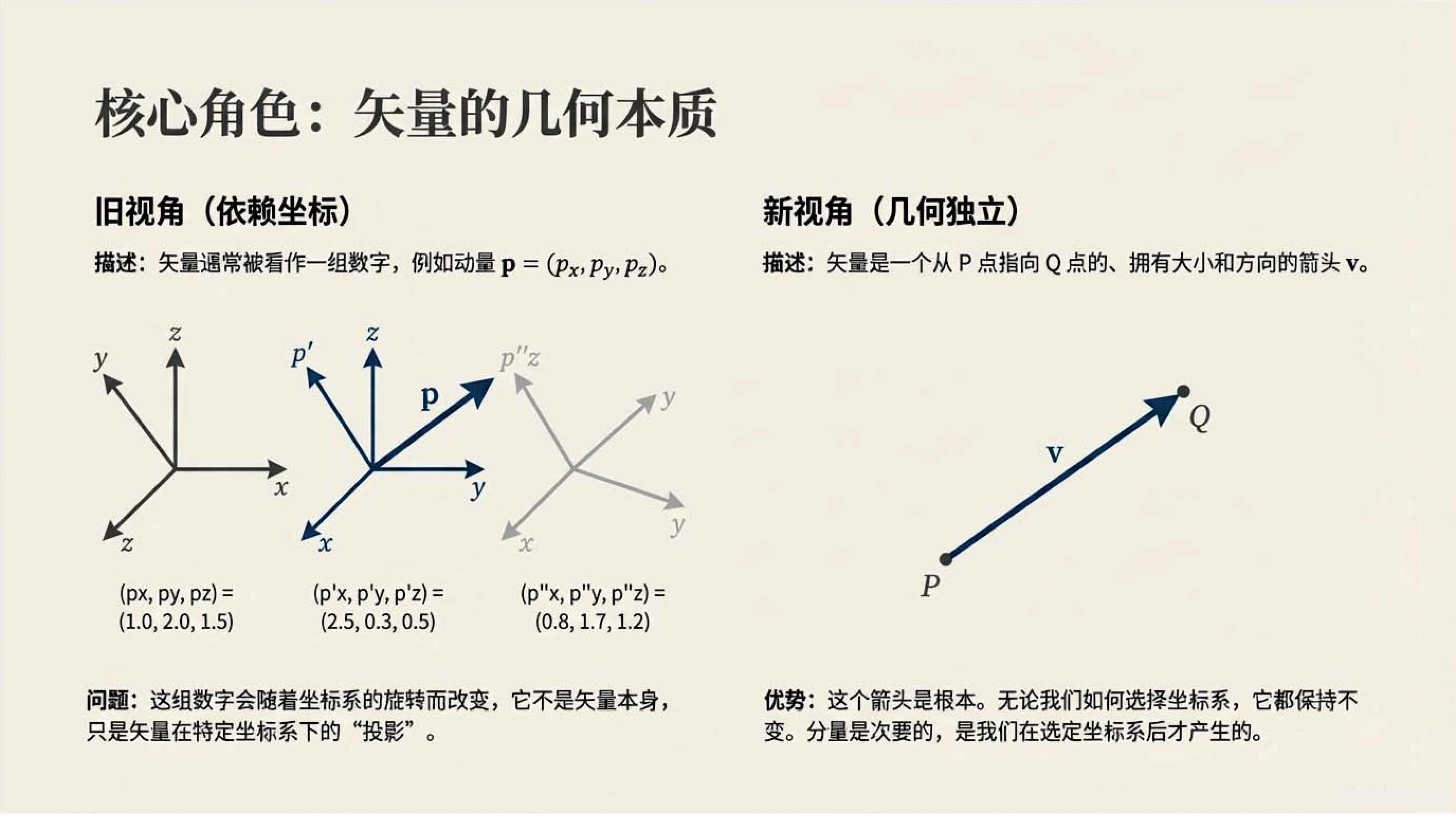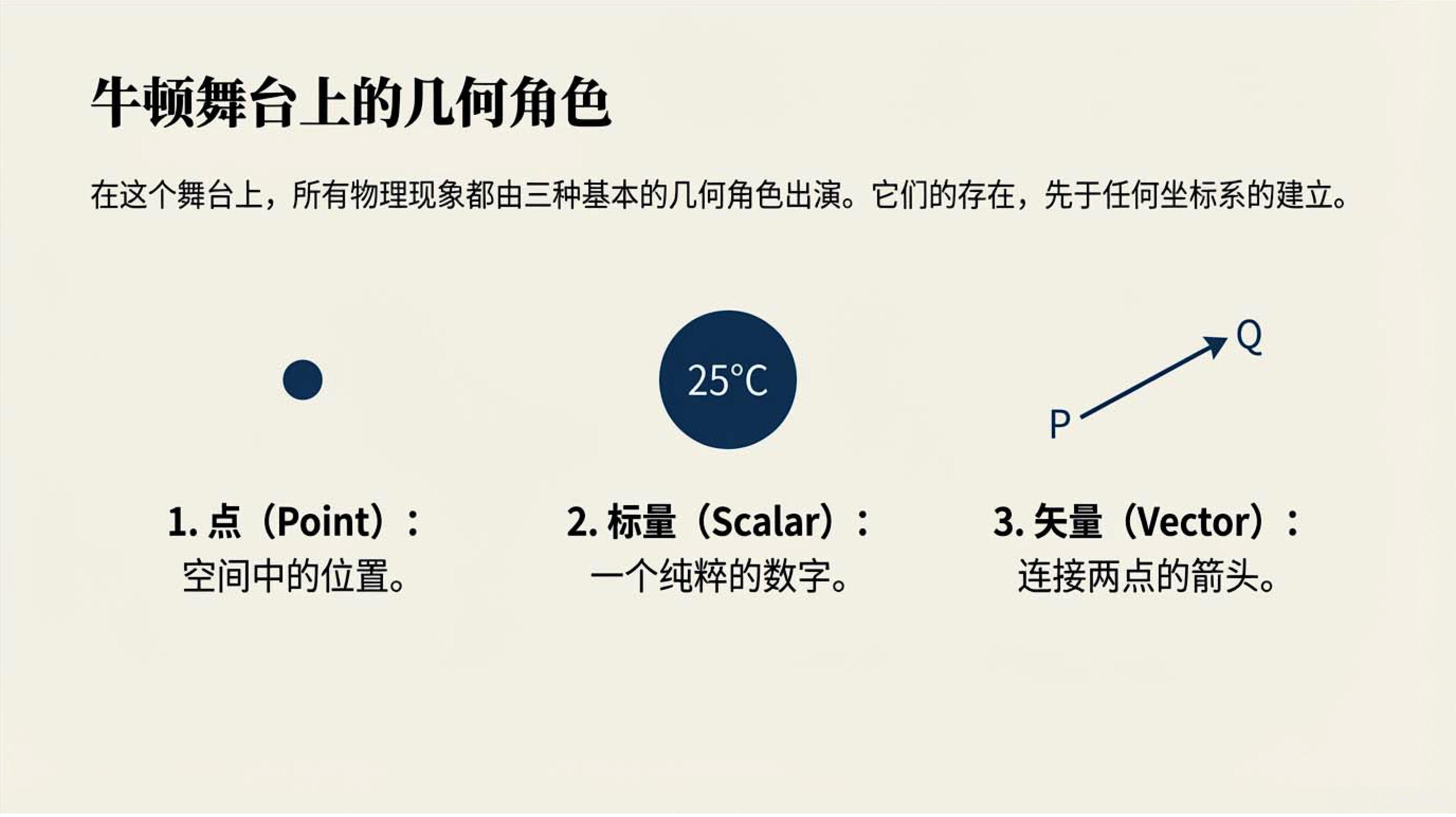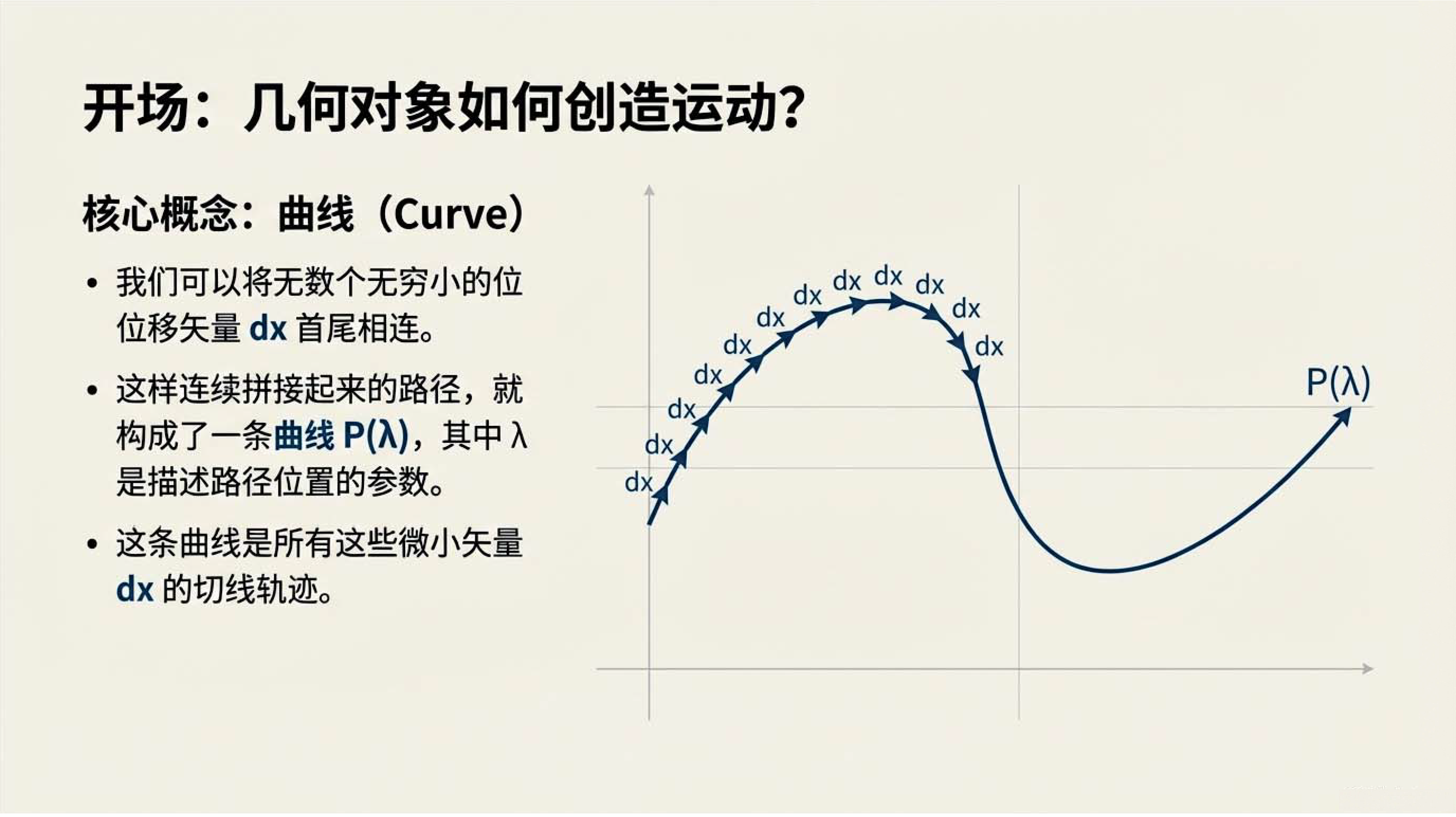 第1课视频的主要内容: 探讨物理定律背后共享的几何原理,介绍广义相对论、狭义相对论和牛顿物理学不同的舞台,阐述用几何原理解剖牛顿物理,认识基本几何对象和运算规则。该几何视角为理解更高阶物理开启新的大门。