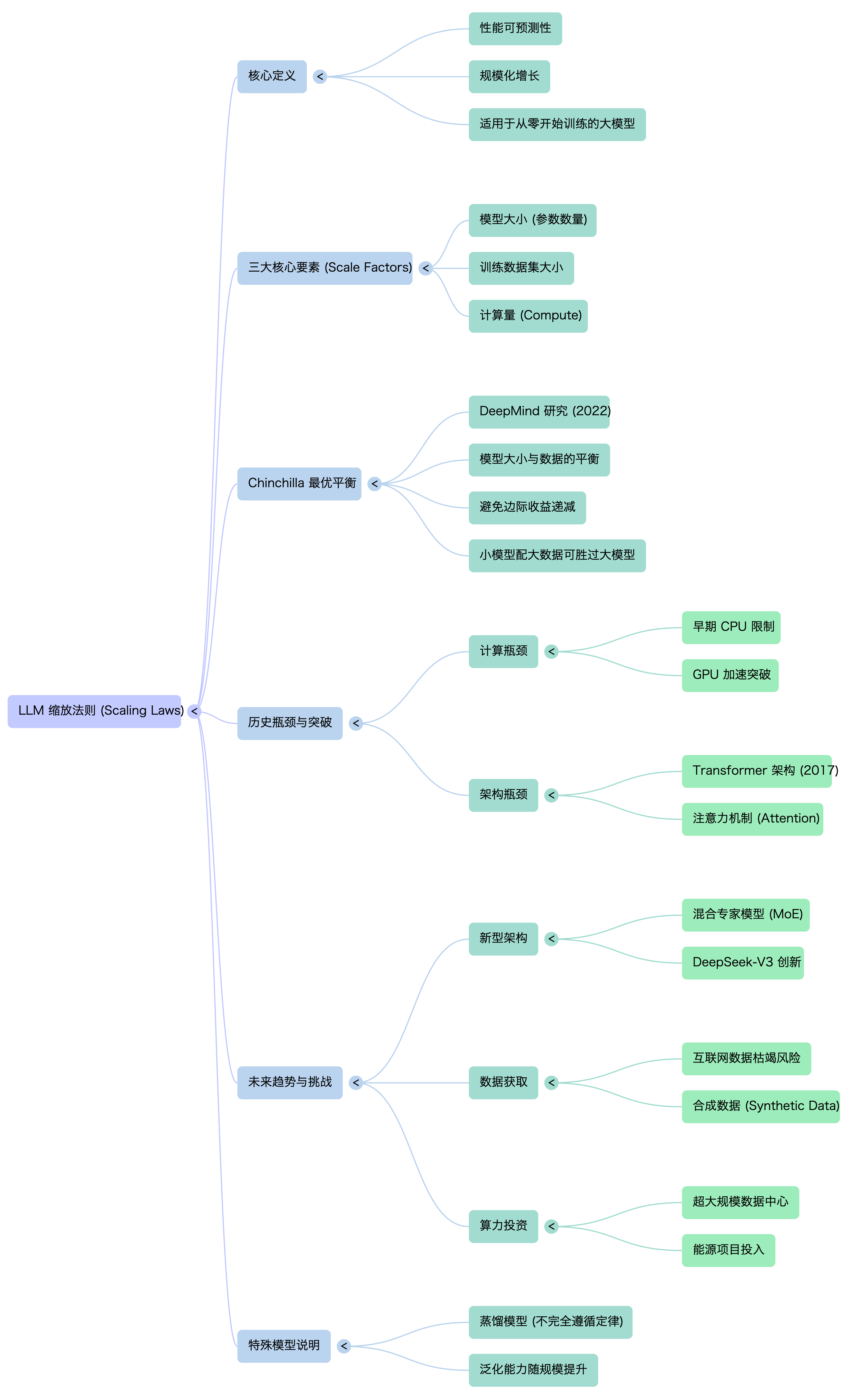 比喻理解: 我们可以把训练大语言模型比作烹饪一场盛大的宴会:参数量就像是厨师的技能等级,训练数据是食材的多样性,而计算量则是厨房设备的火力。扩展定律告诉我们,想要做出一桌绝顶美味(模型性能),你必须同时提升这三者。如果你只有顶级的厨师(高参数量)和强大的炉灶(高算力),却没有足够的食材(训练数据),那么最终的菜肴品质(性能)也会遭遇瓶颈。只有当这三者比例协调时,宴会的水平才会随着投入的增加而稳步提升。