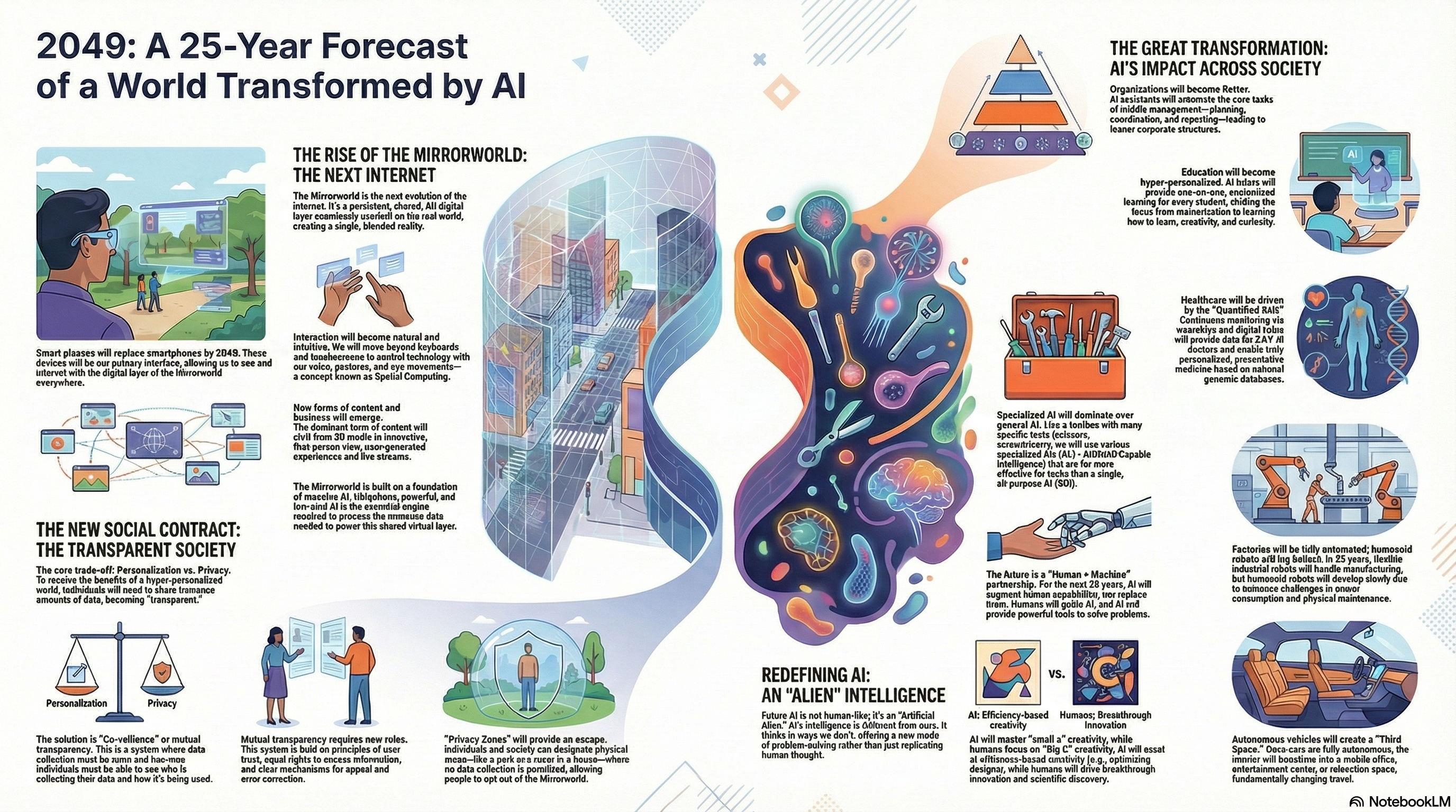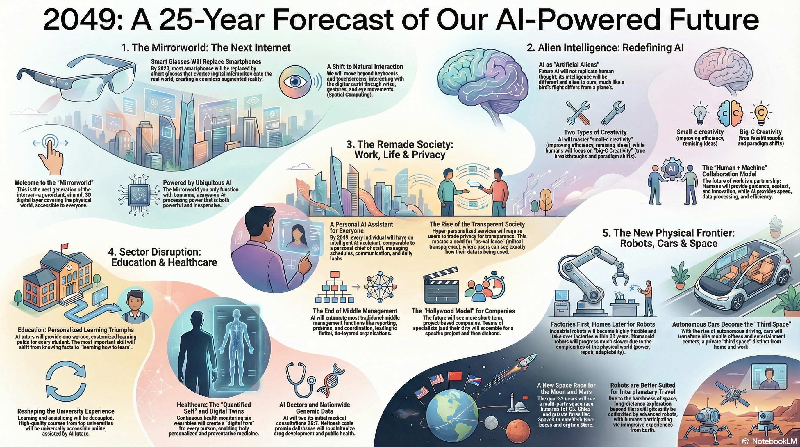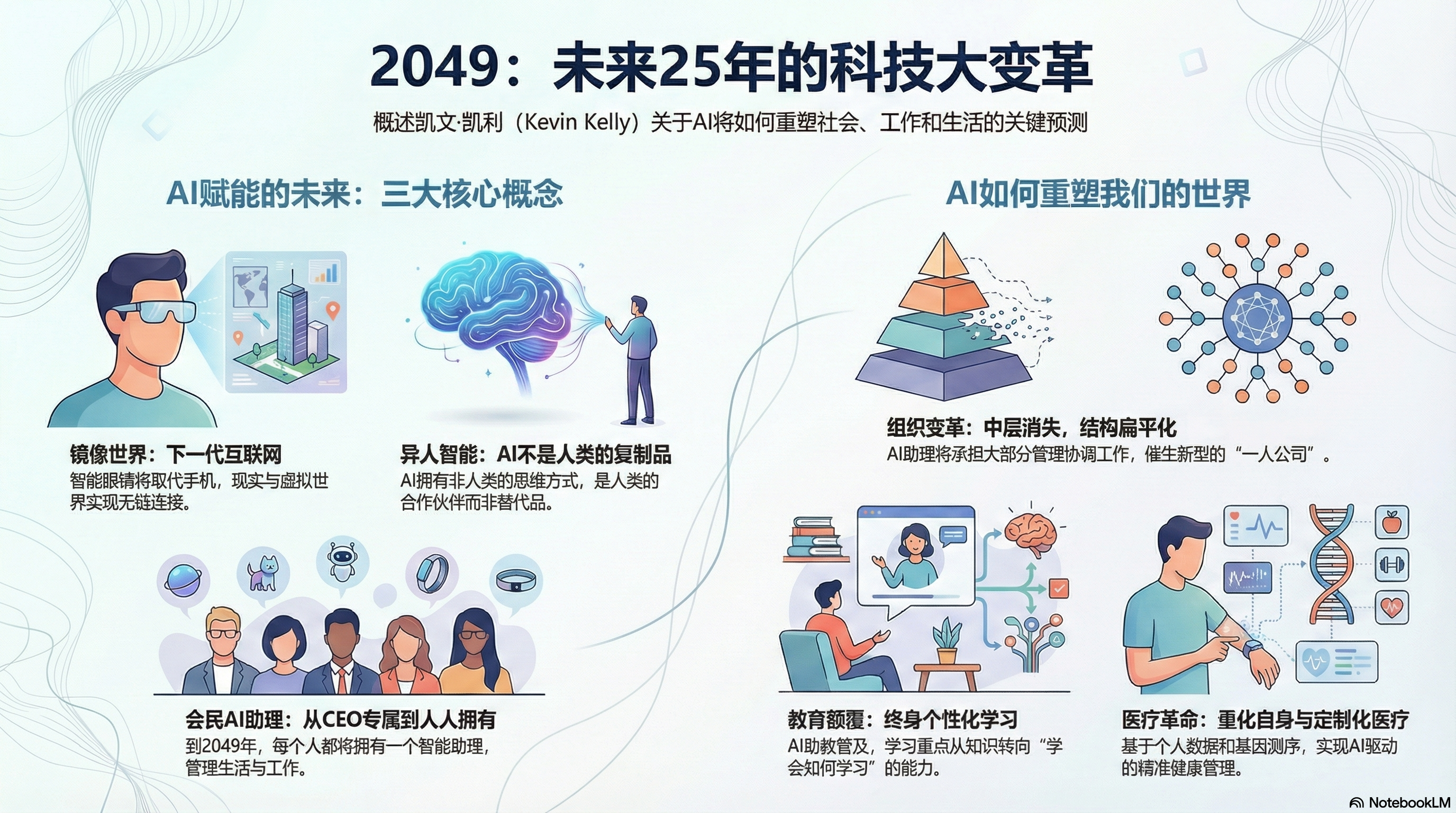 探讨从2024年起未来一万天全球科技与社会的演进趋势,重点分析了人工智能如何重塑人类文明。作者预测,AI助手将深度介入教育、医疗及企业组织,促使社会结构向去中心化和高透明度转型。书中还详述了仿生机器人从工厂步入家庭的路径,以及自动驾驶将如何把汽车转变为沉浸式的第三生活空间。在生命科学领域,基因测序与精准医疗被视为实现长寿的关键,而中美太空竞赛则将人类的探索边界拓展至月球基地与火星。通过对数字化生存与星际探索的系统前瞻,该作品勾勒出一幅充满挑战与可能性的科技乌托邦蓝图。