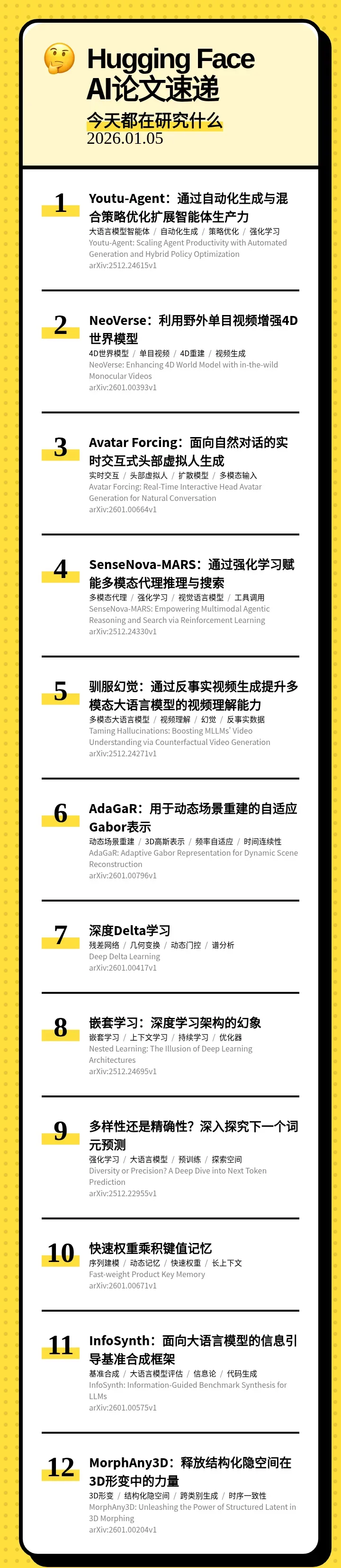 00:22 🤖 Youtu-Agent: Scaling Agent Productivity with Automated Generation and Hybrid Policy Optimization(Youtu-Agent:通过自动化生成与混合策略优化扩展智能体生产力)
