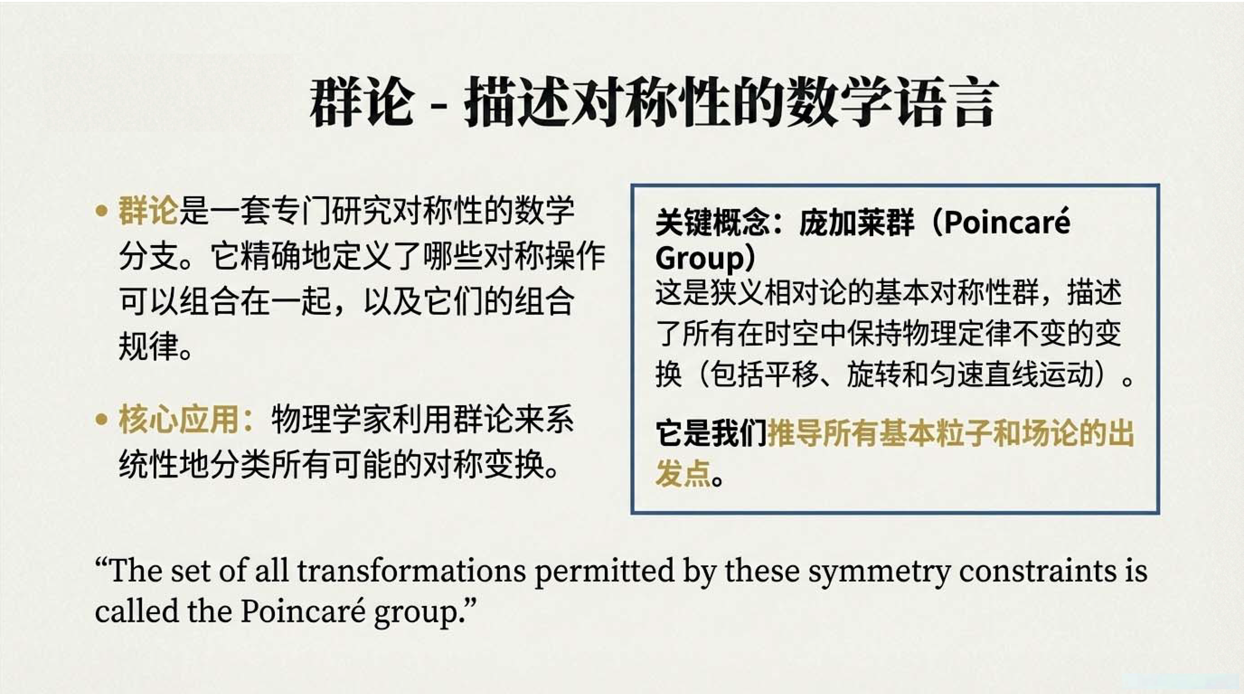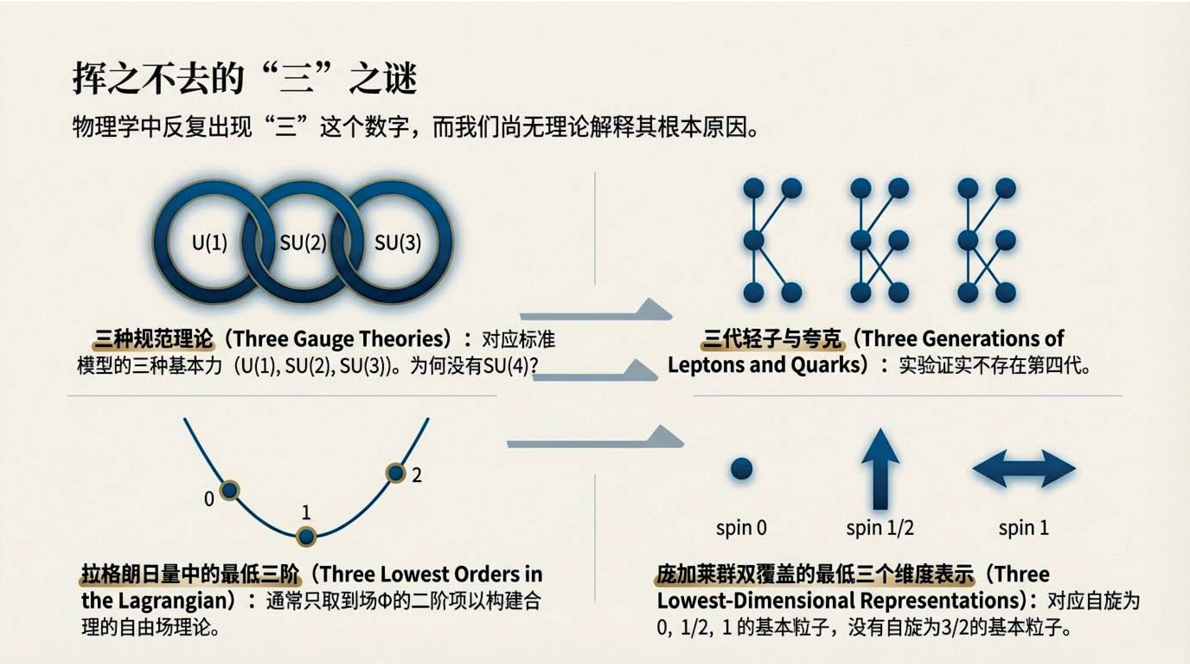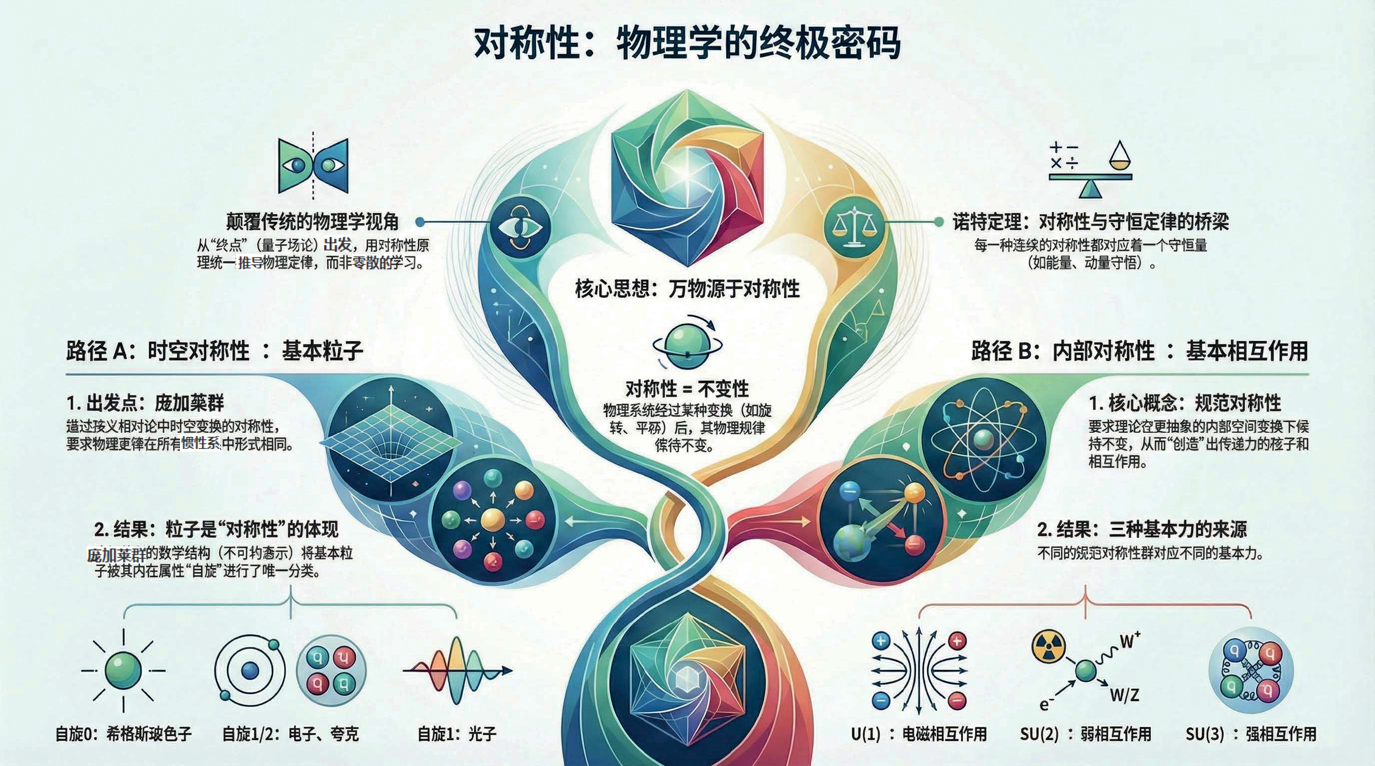 第1课视频的主要内容: 阐述对称性是物理学的核心思想,介绍了从时空和内部对称性推导物理定律的路径,包括基本粒子分类、基本力来源等。还探讨了理论假设、自然常数、引力特殊情况、自然单位制等内容,以及粒子构成基本相互作用和传递者等知识。第1课完整讲义:zhuanlan.zhihu.com00:00 开篇语01:0401:5804:5107:2307:5410:4511:3612:0612:3815:0216:2018:1820:34 结束语