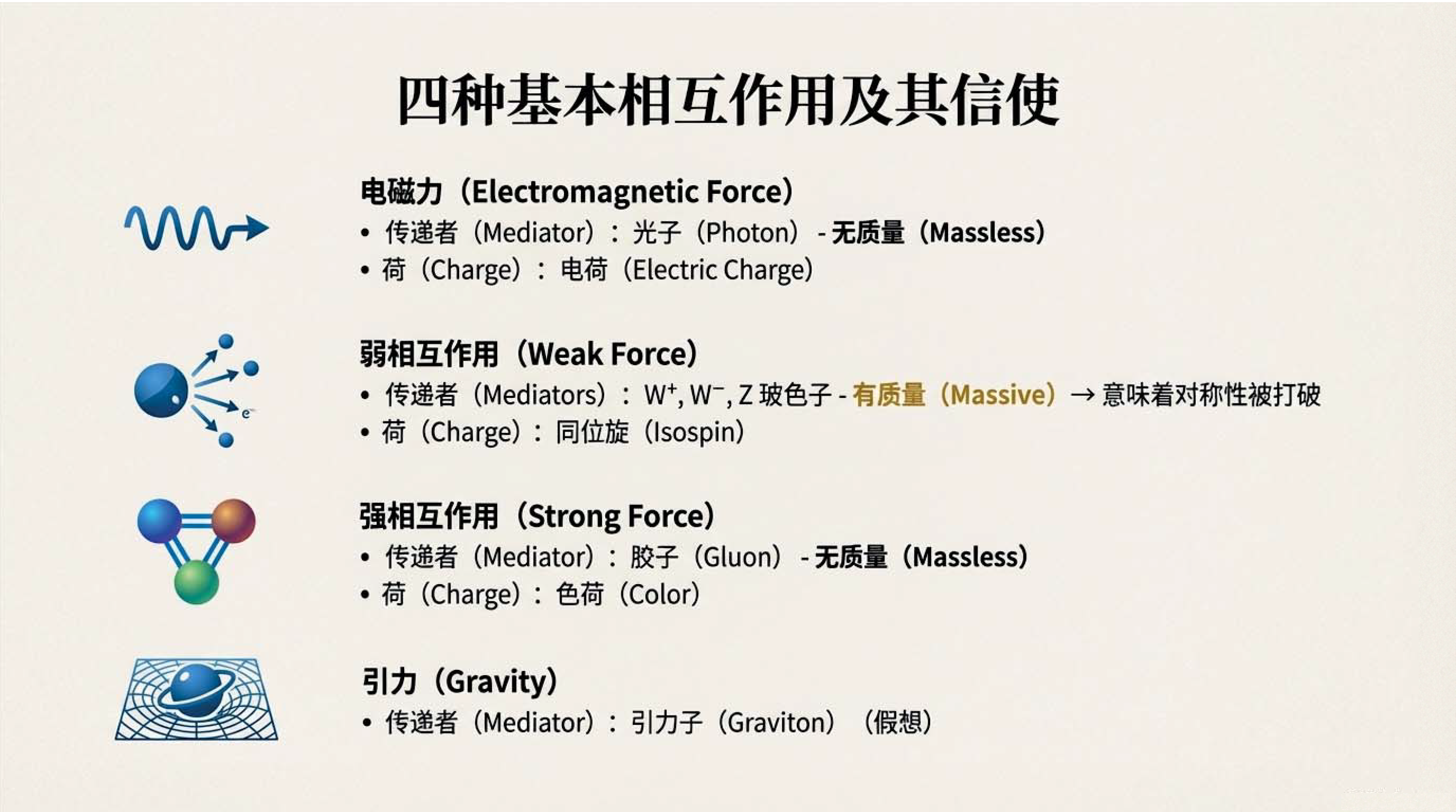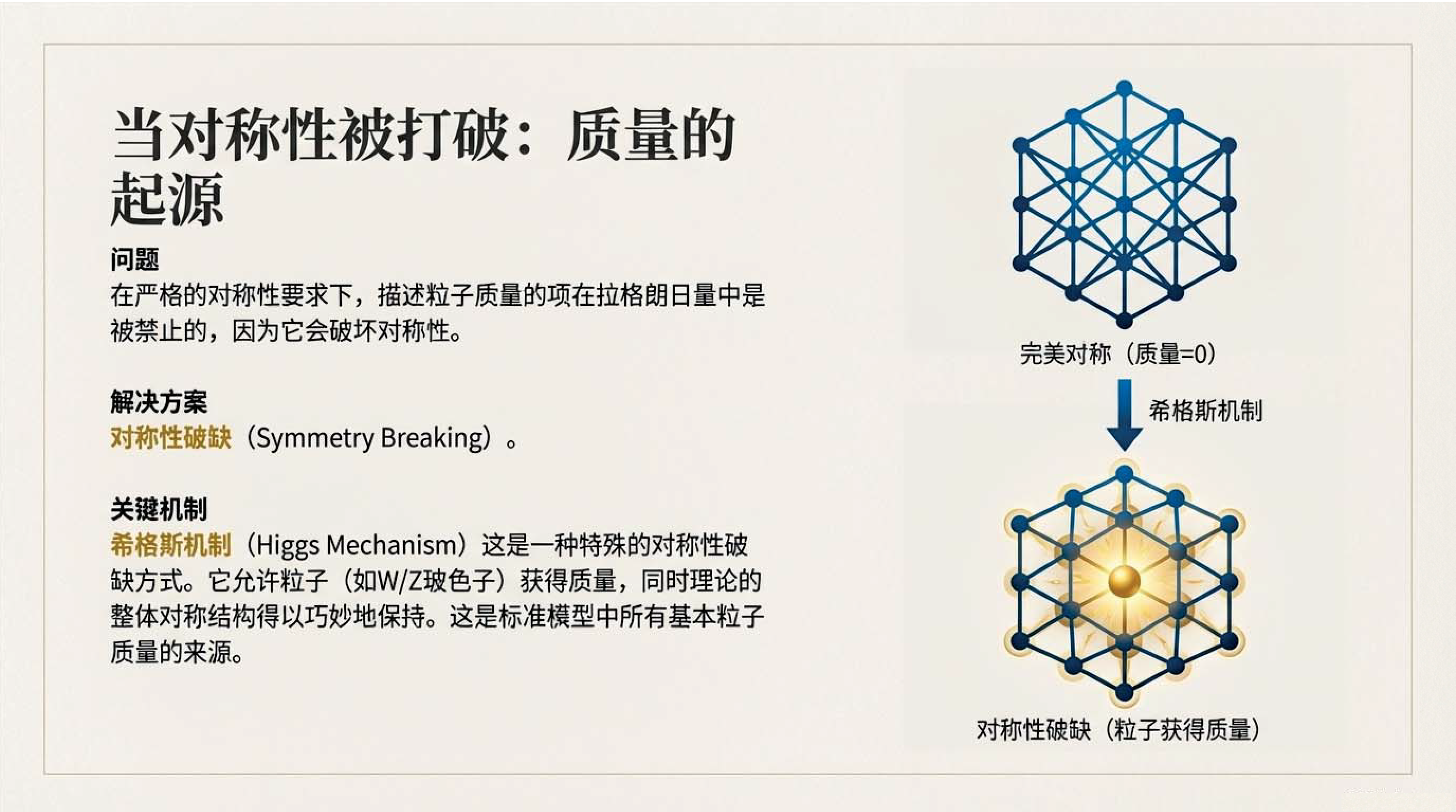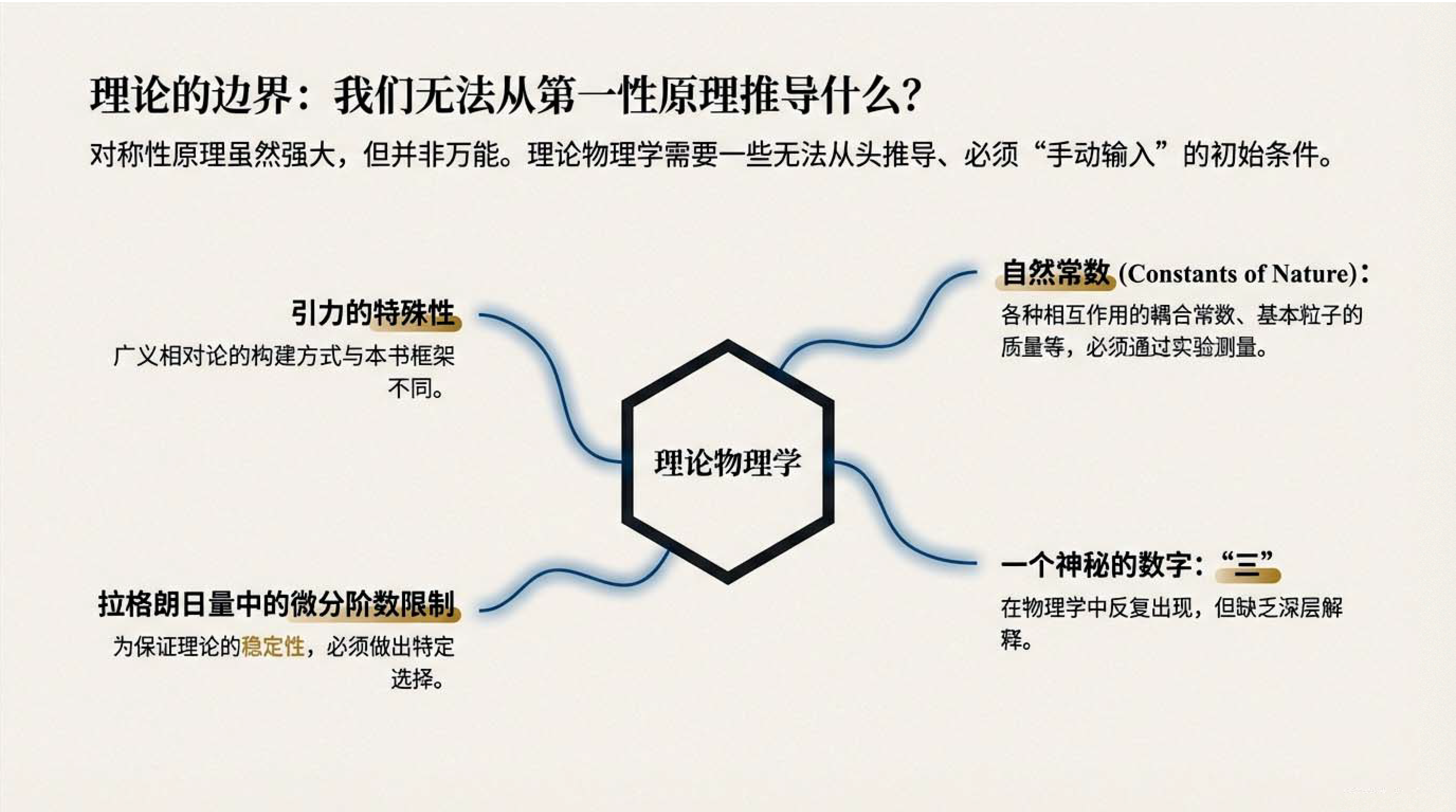 第1课视频的主要内容: 阐述对称性是物理学的核心思想,介绍了从时空和内部对称性推导物理定律的路径,包括基本粒子分类、基本力来源等。还探讨了理论假设、自然常数、引力特殊情况、自然单位制等内容,以及粒子构成基本相互作用和传递者等知识。第1课完整讲义:zhuanlan.zhihu.com00:00 开篇语01:0401:5804:5107:2307:5410:4511:3612:0612:3815:0216:2018:1820:34 结束语
