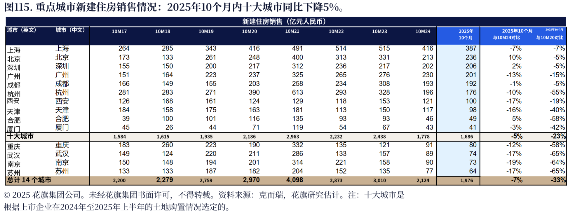 2026年的市场更要直面结构性下滑:全国销售额预计降11%,新开工量跌至2003年水平,竣工量降15%。不过也有分化,图115(重点城市新建住房销售)显示,上海、北京等十大城市销售额降幅仅5%,远好于全国,核心城市核心区域仍是相对安全的避风港。