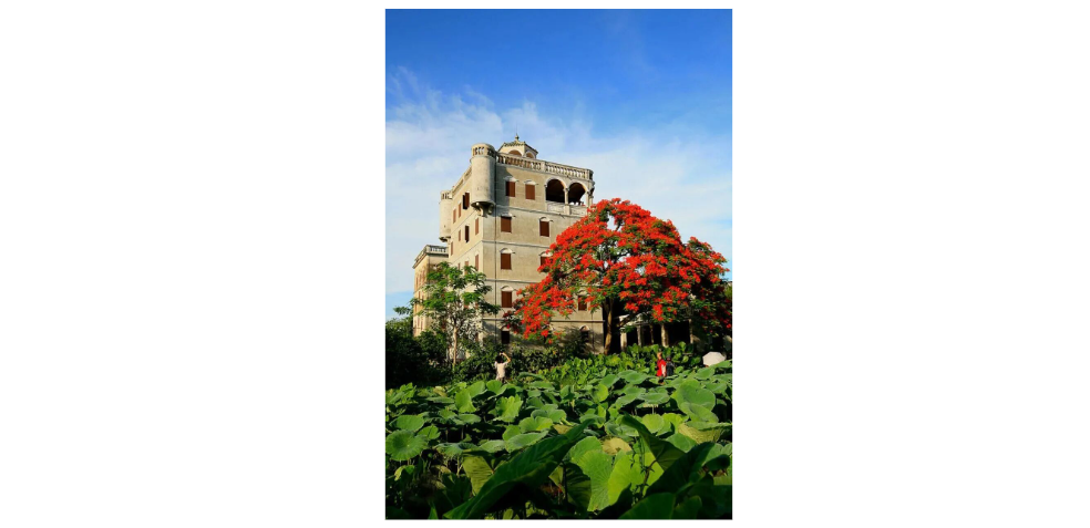 开平碉楼与村落世界文化遗产区——自力村中一座碉楼,该碉楼建筑恢弘,室内保存大量精美文物,呈现侨乡富裕阶层的生活图景,与逸农庐的平民叙事形成对照。因电影《让子弹飞》中作为黄四郎宅邸取景而广为人知。