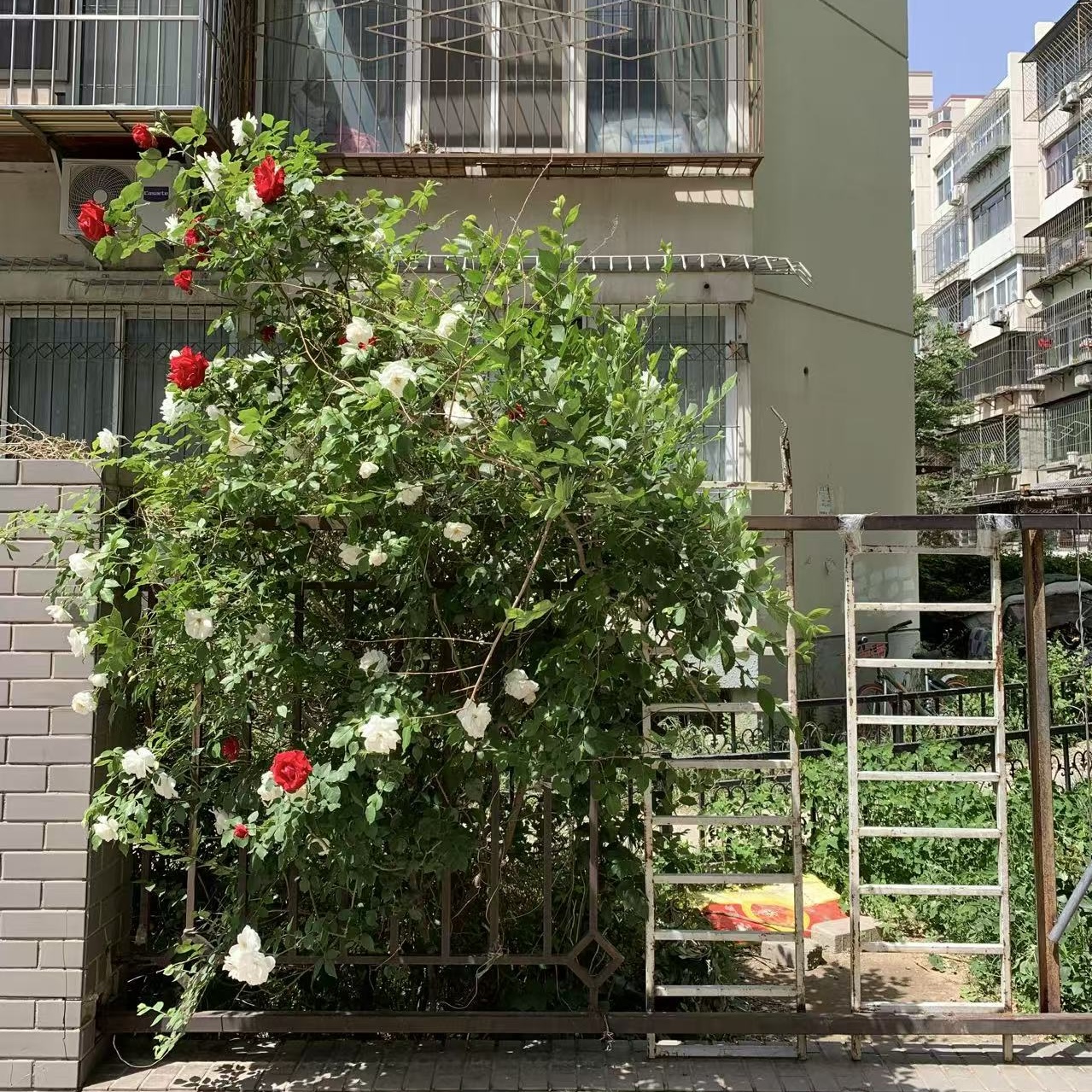 (下图:每天回家翻的小区外墙,到后来学会了欣赏墙边的月季和桑葚树)