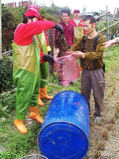 警方找到的蓝色塑胶桶以及硫酸无法完全溶解的王丽文的牛仔短裤残片
