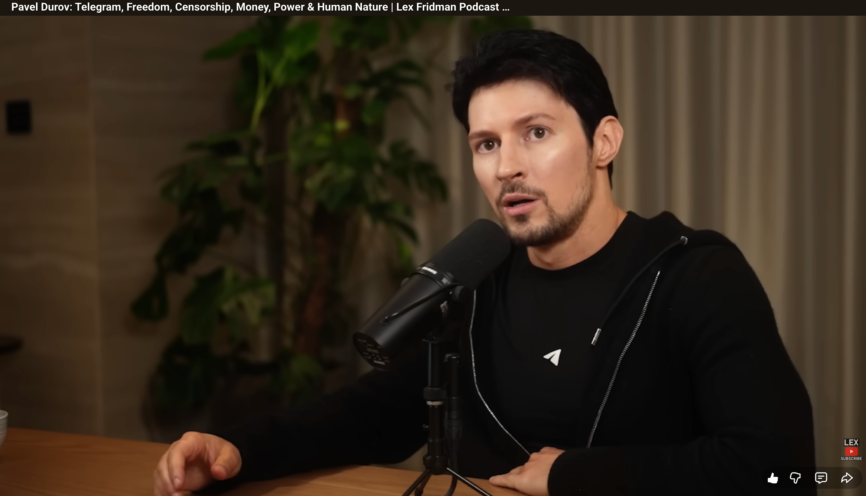 这期播客是主播 Lex Fridman 对 Telegram 创始人 Pavel Durov 帕维尔·杜罗夫的深度访谈。文中详细记录了杜罗夫对个人自由、自律生活以及技术哲学的独特见解,包括他坚持不懈的身体锻炼和极简的饮食习惯。
