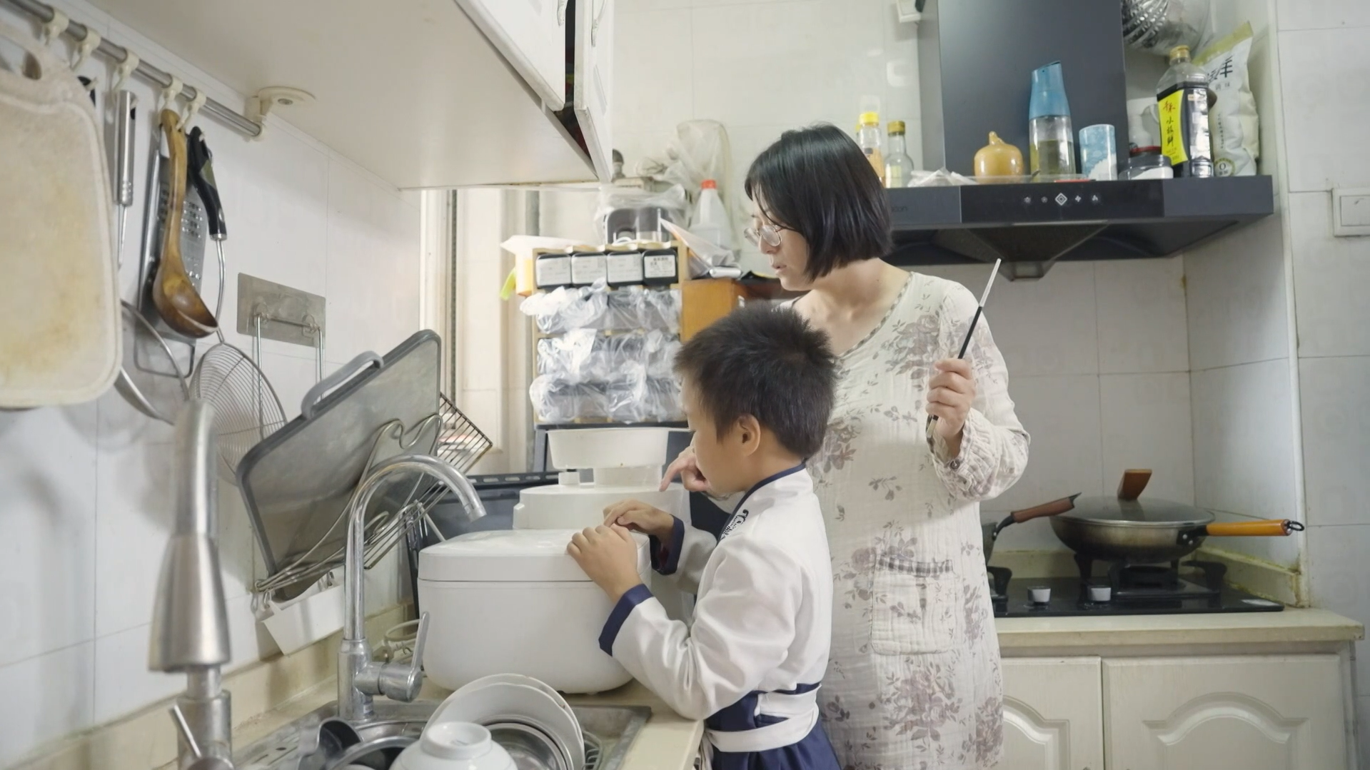 00:41- 01:42 进入小学后,普通的行为规范和环境对路予衡造成了巨大的情绪压力,导致紧张和崩溃。妈妈主动通过在家模拟学校场景,反复教导和练习,帮助孩子学习如何适应规则、融入集体生活