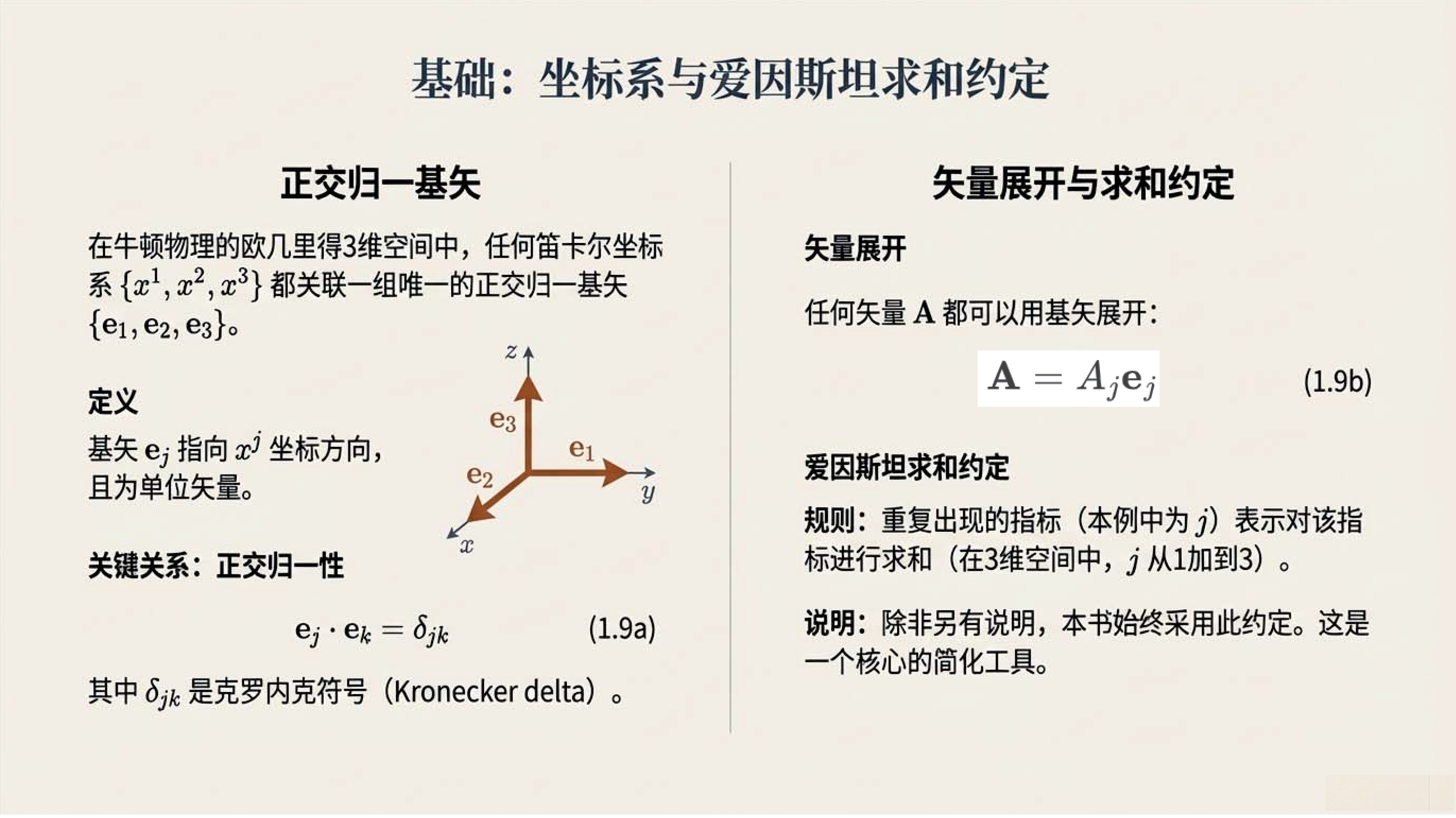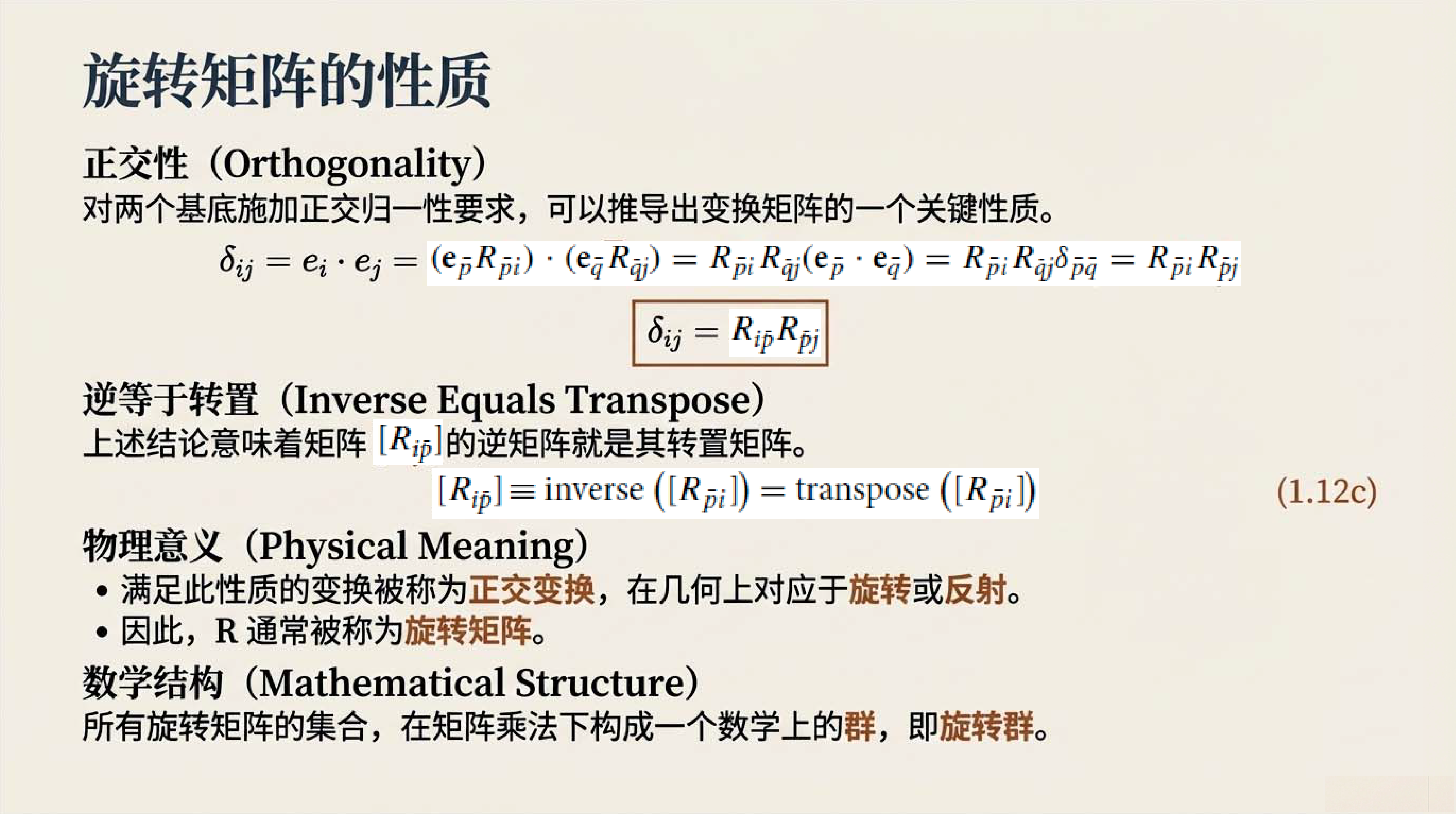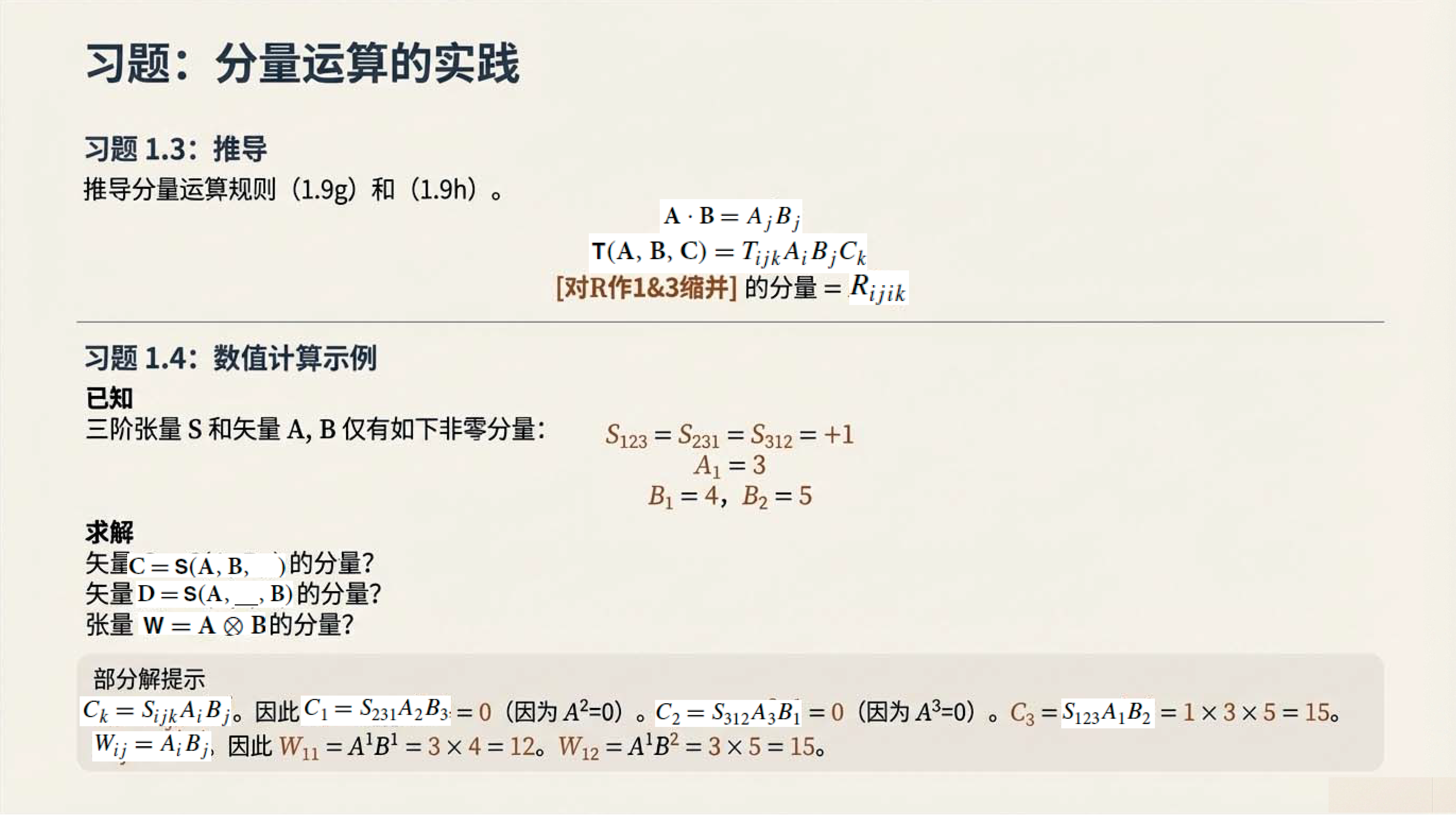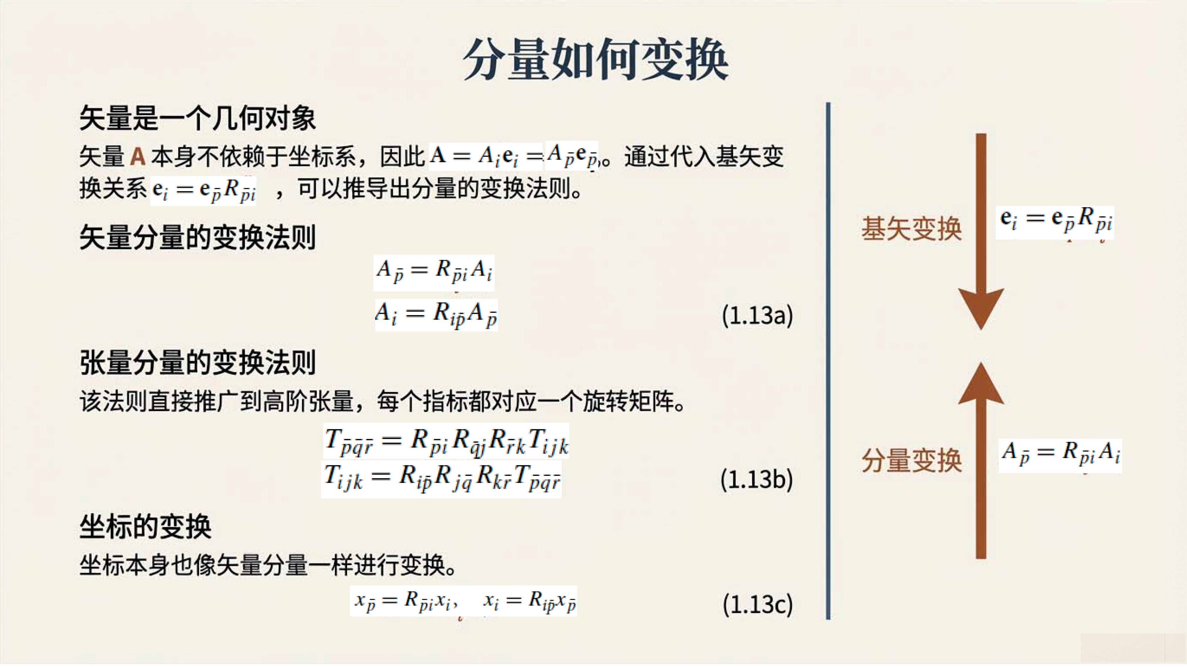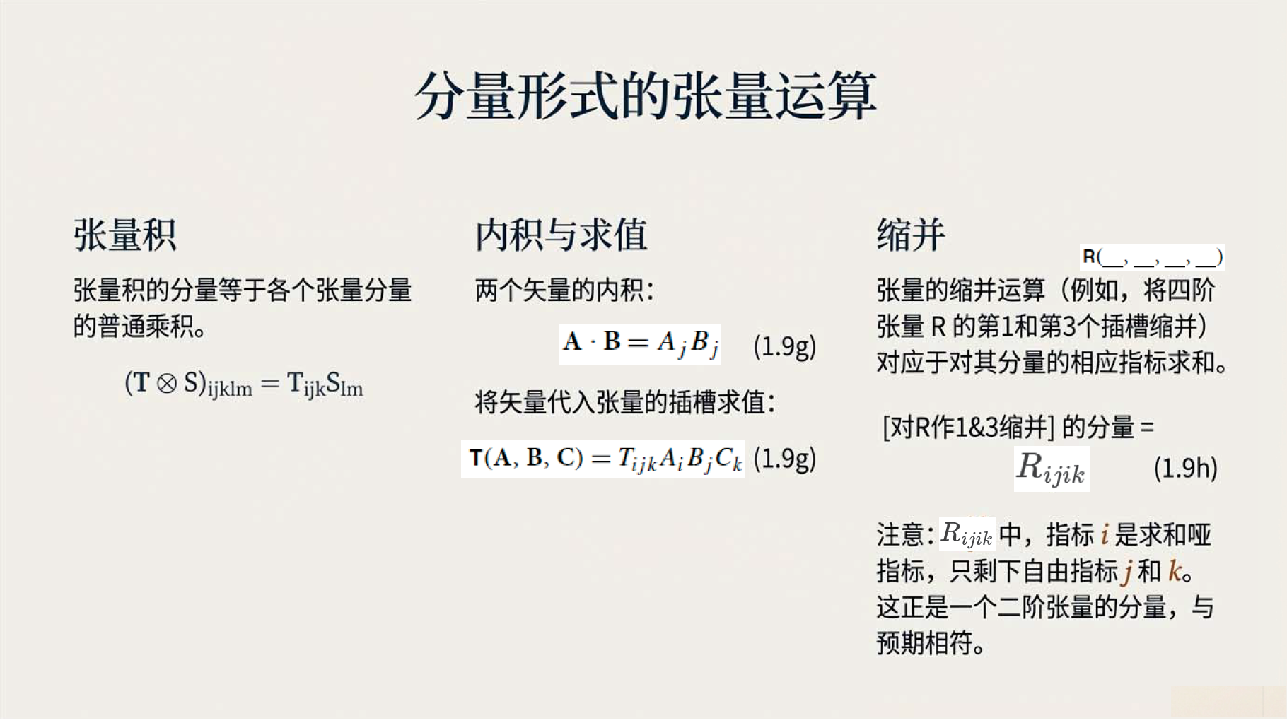 第3课视频的主要内容: 介绍了张量分量表示法的基础,涵盖基矢量爱因斯坦求和约定、分量计算等内容,还阐述了其在物理学和量子理论中的应用。同时介绍了相关运算规则,如张量积、内积、缩并等,以及基的正交变换和旋转矩阵性质。第3课完整讲义:zhuanlan.zhihu.com00:00 开篇语04:3006:3908:1110:2711:0712:2015:1116:3516:5819:17