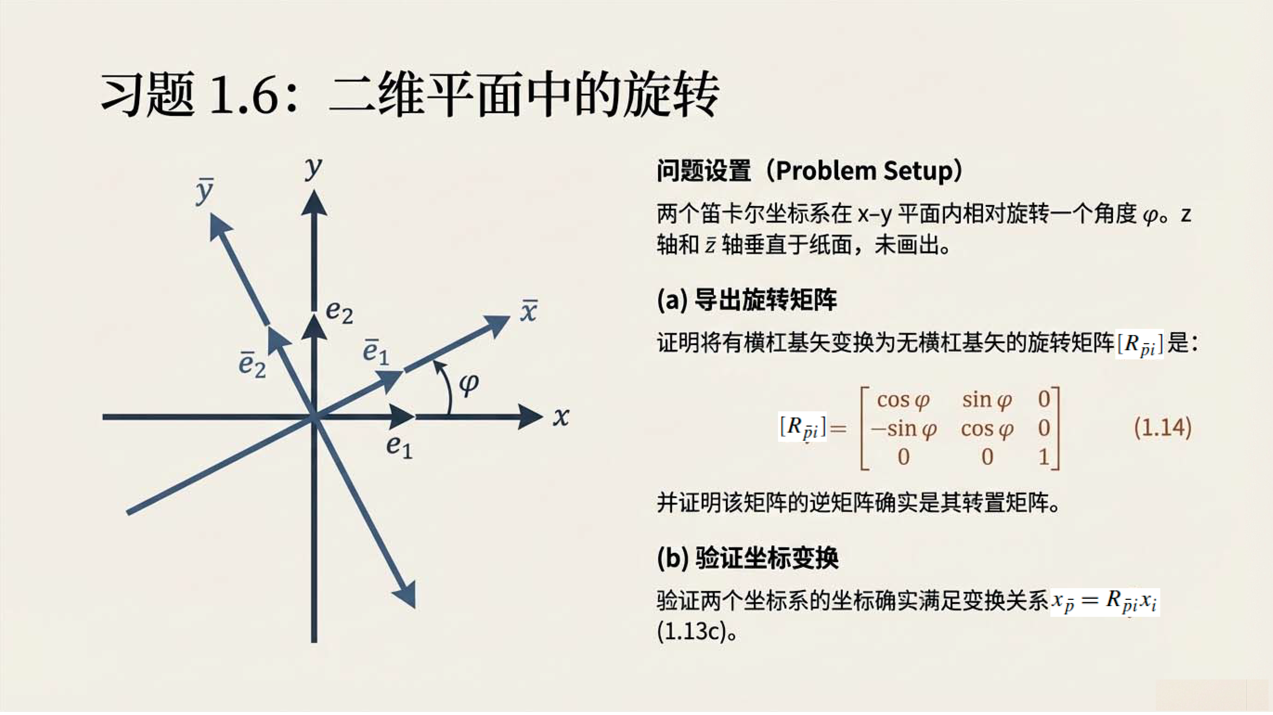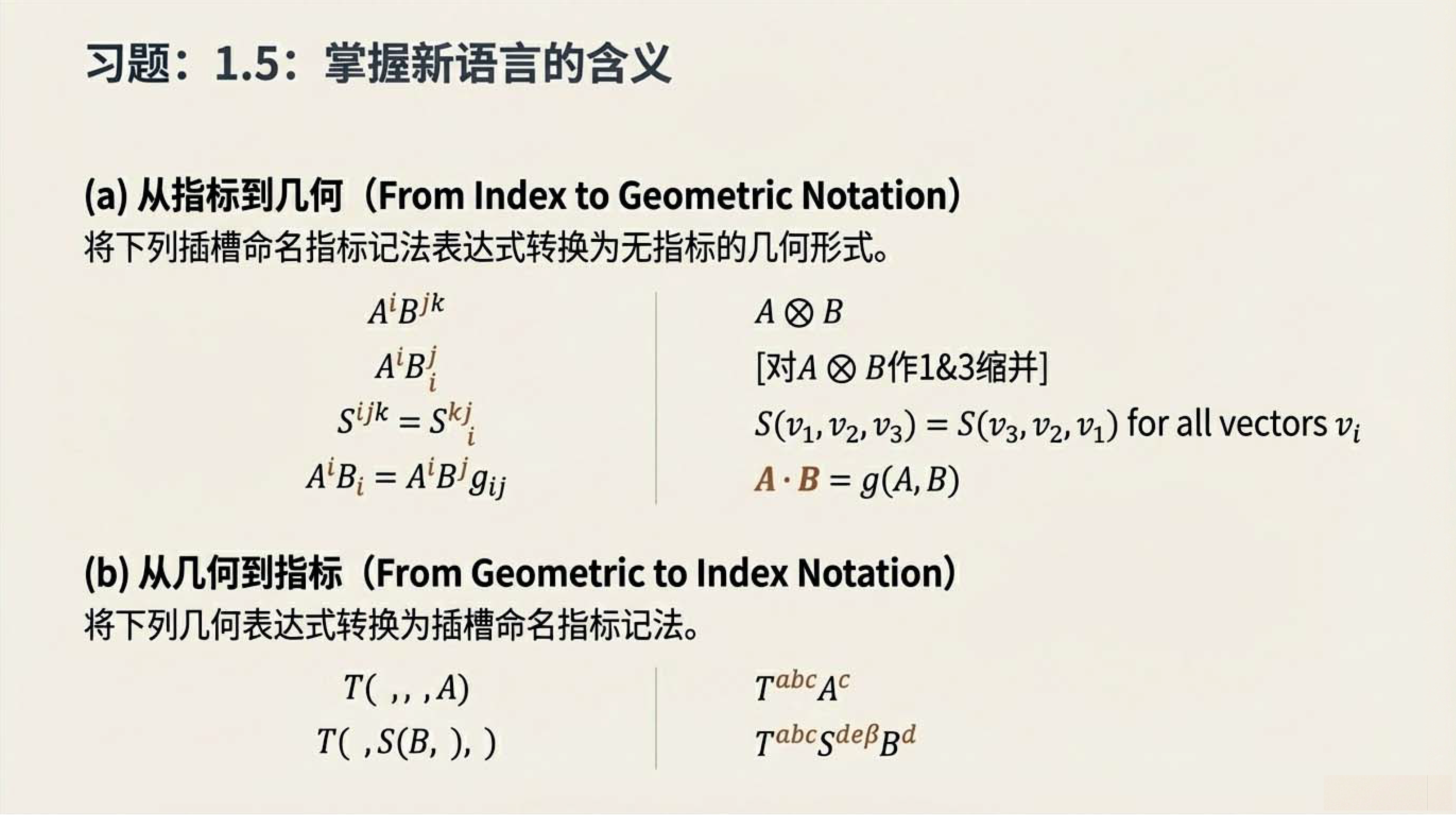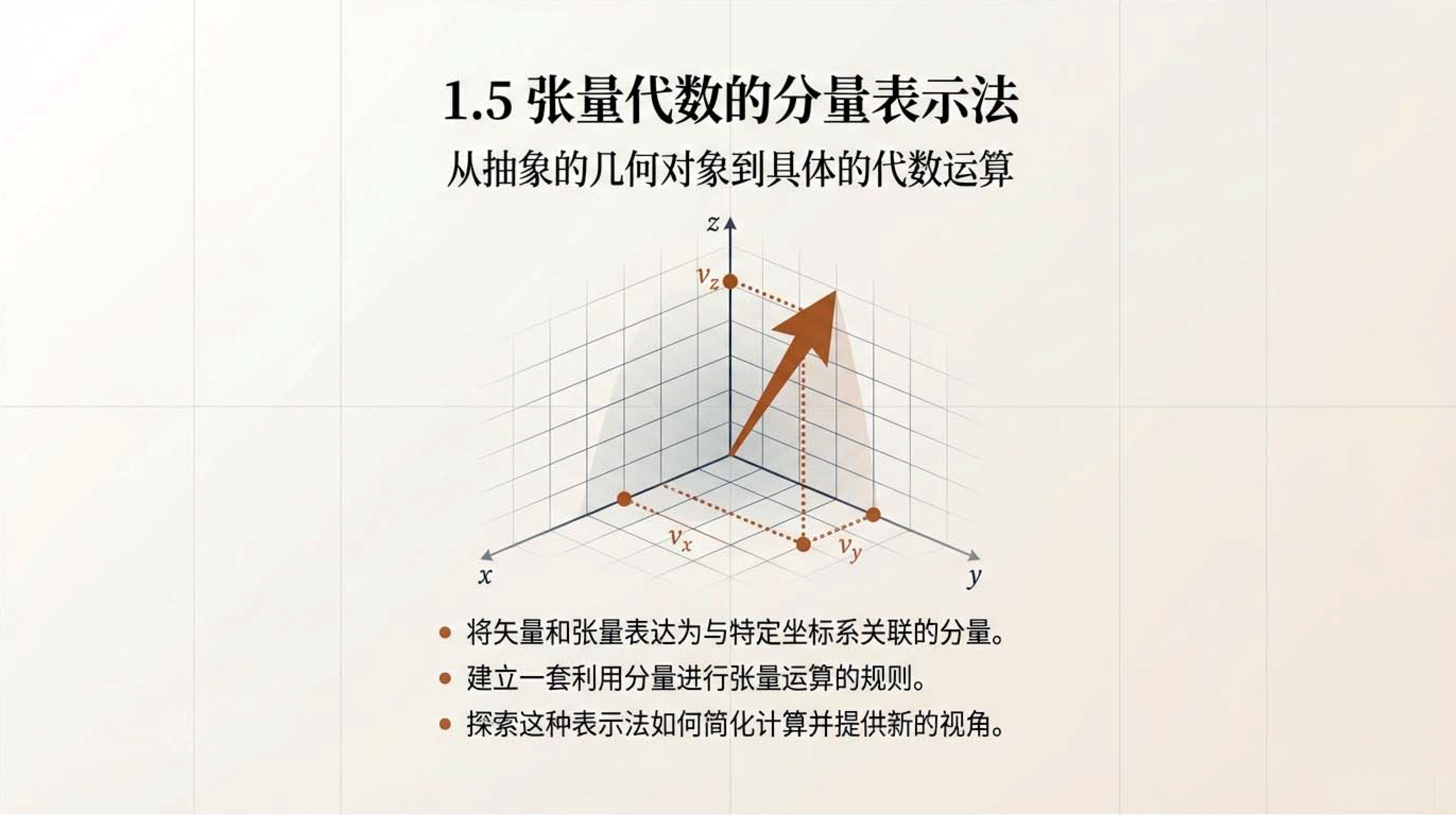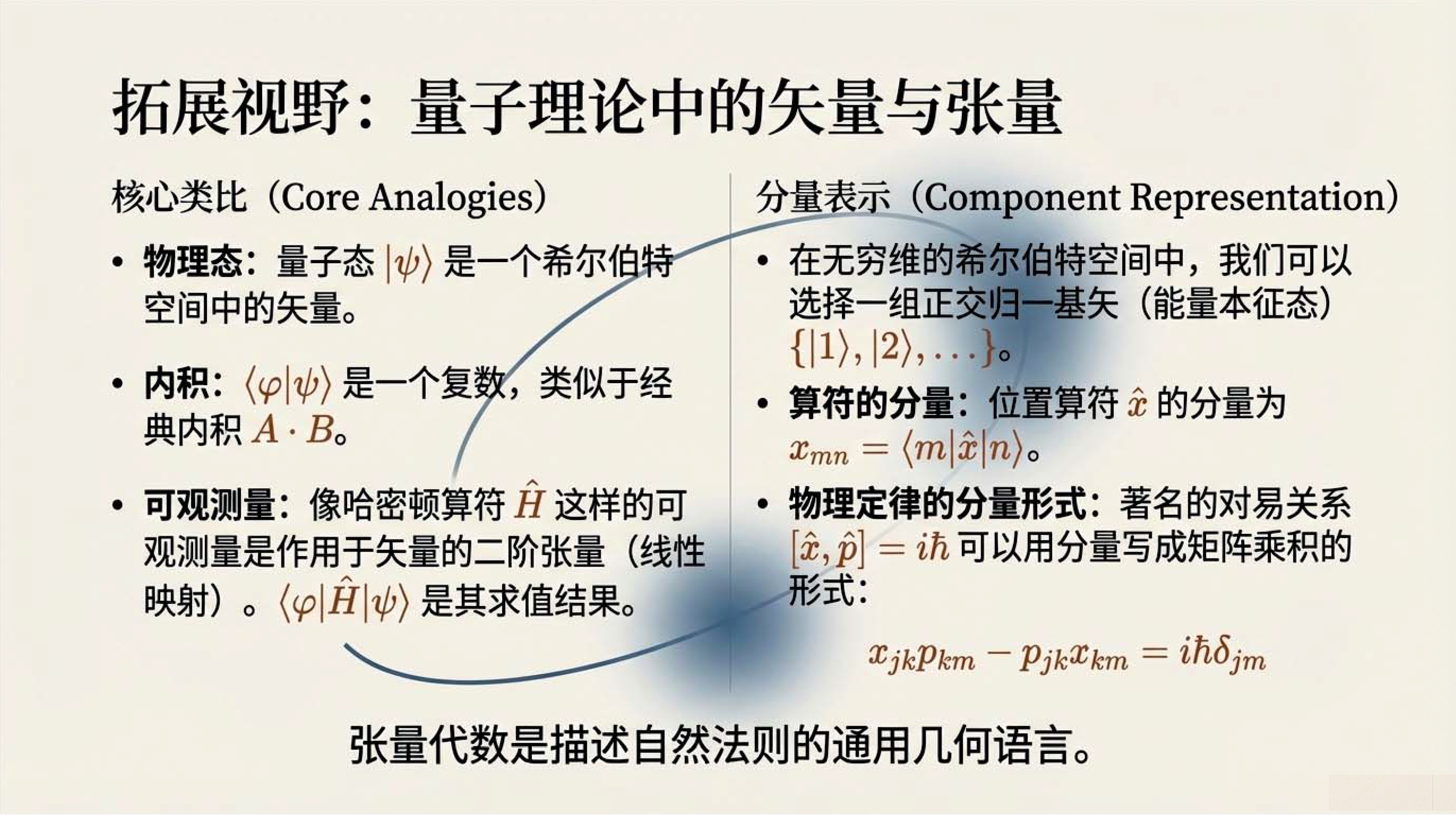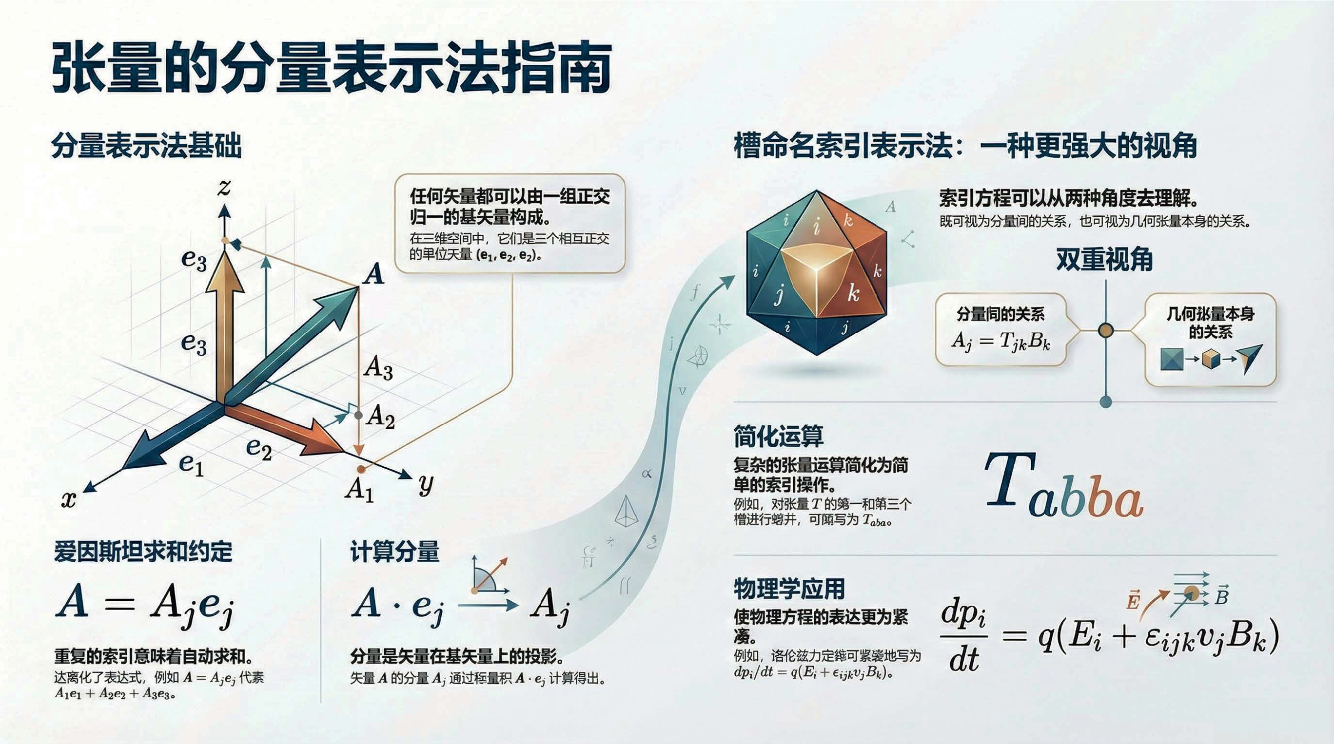 第3课视频的主要内容: 介绍了张量分量表示法的基础,涵盖基矢量爱因斯坦求和约定、分量计算等内容,还阐述了其在物理学和量子理论中的应用。同时介绍了相关运算规则,如张量积、内积、缩并等,以及基的正交变换和旋转矩阵性质。第3课完整讲义:zhuanlan.zhihu.com00:00 开篇语04:3006:3908:1110:2711:0712:2015:1116:3516:5819:17