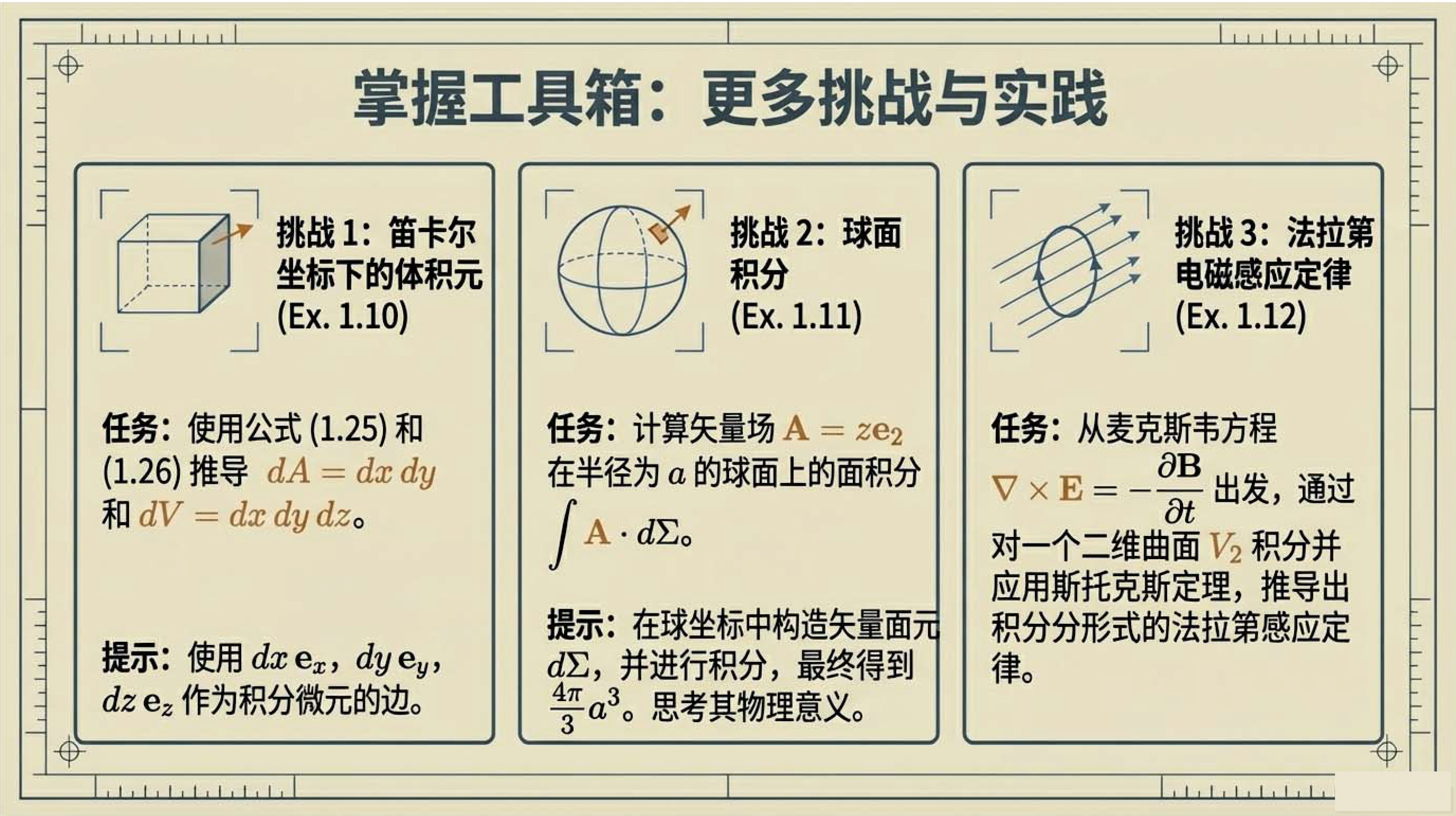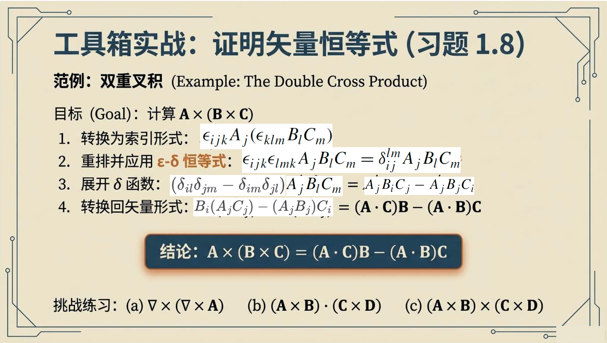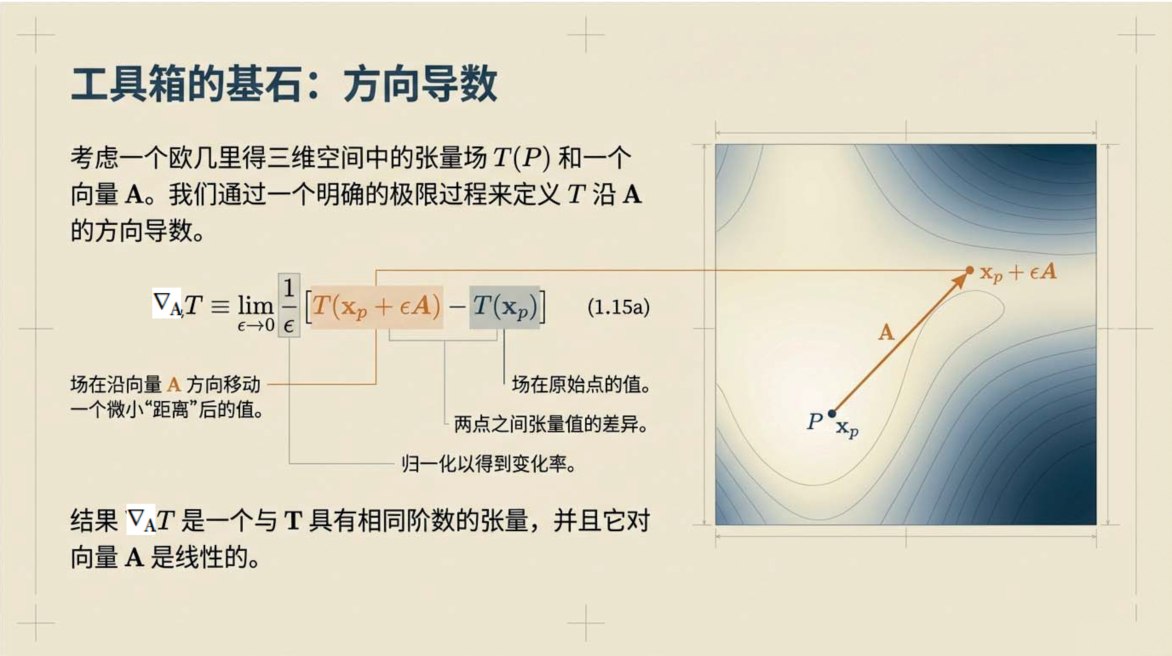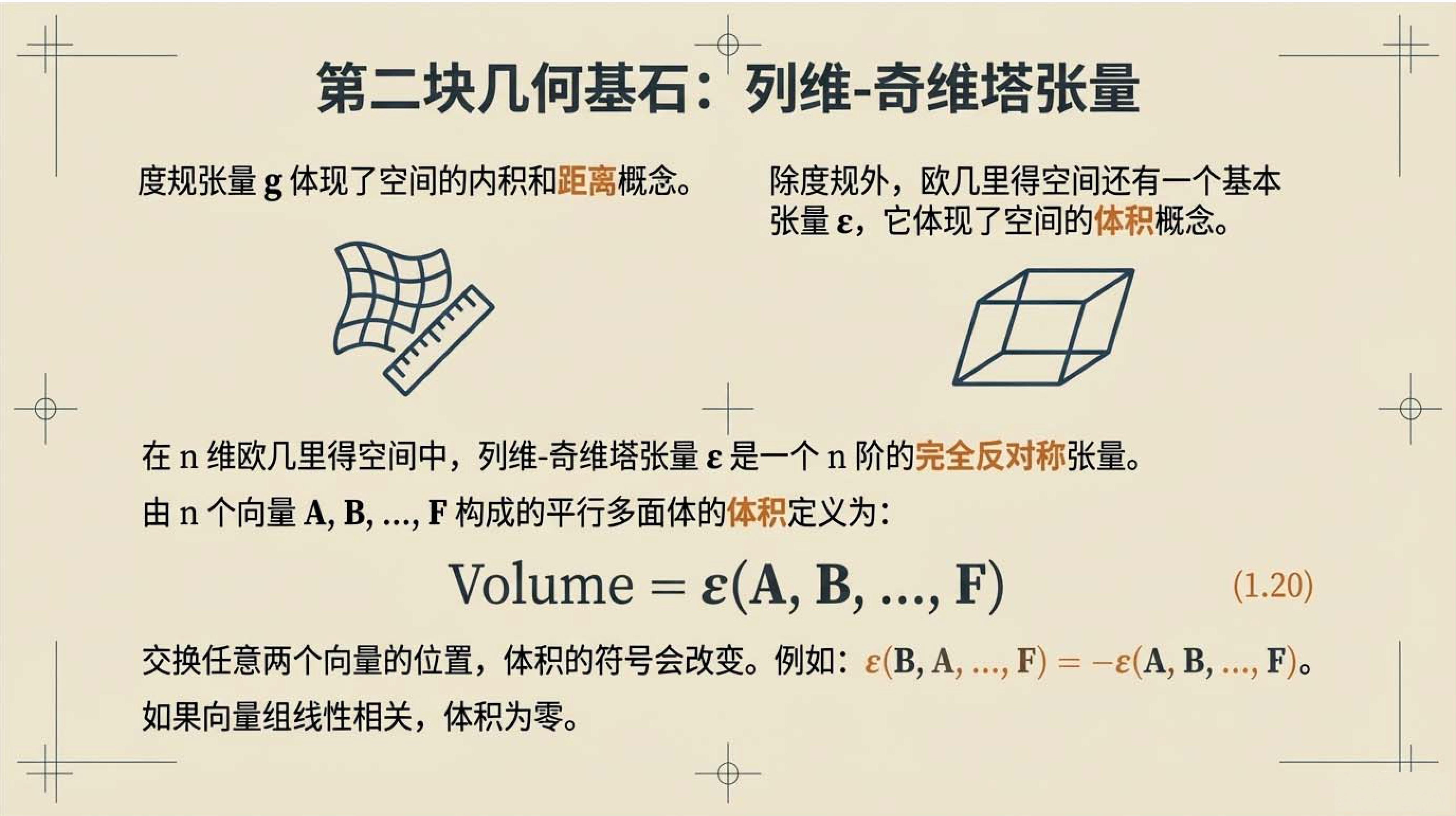 第4课视频的主要内容: 介绍了张量微积分的几何视角,包括梯度、散度、旋度等核心微分算子的定义与作用,以及它们与列维-奇维塔张量的关联。还阐述了高斯定理、斯托克斯定理等基本定理,以及这些定理在物理守恒定律推导等方面的应用。第4课完整讲义:zhuanlan.zhihu.com00:00 开篇语00:4301:5503:1604:5506:1207:1307:4708:4209:2309:3210:0010:5112:0612:3613:56 结束语14:34