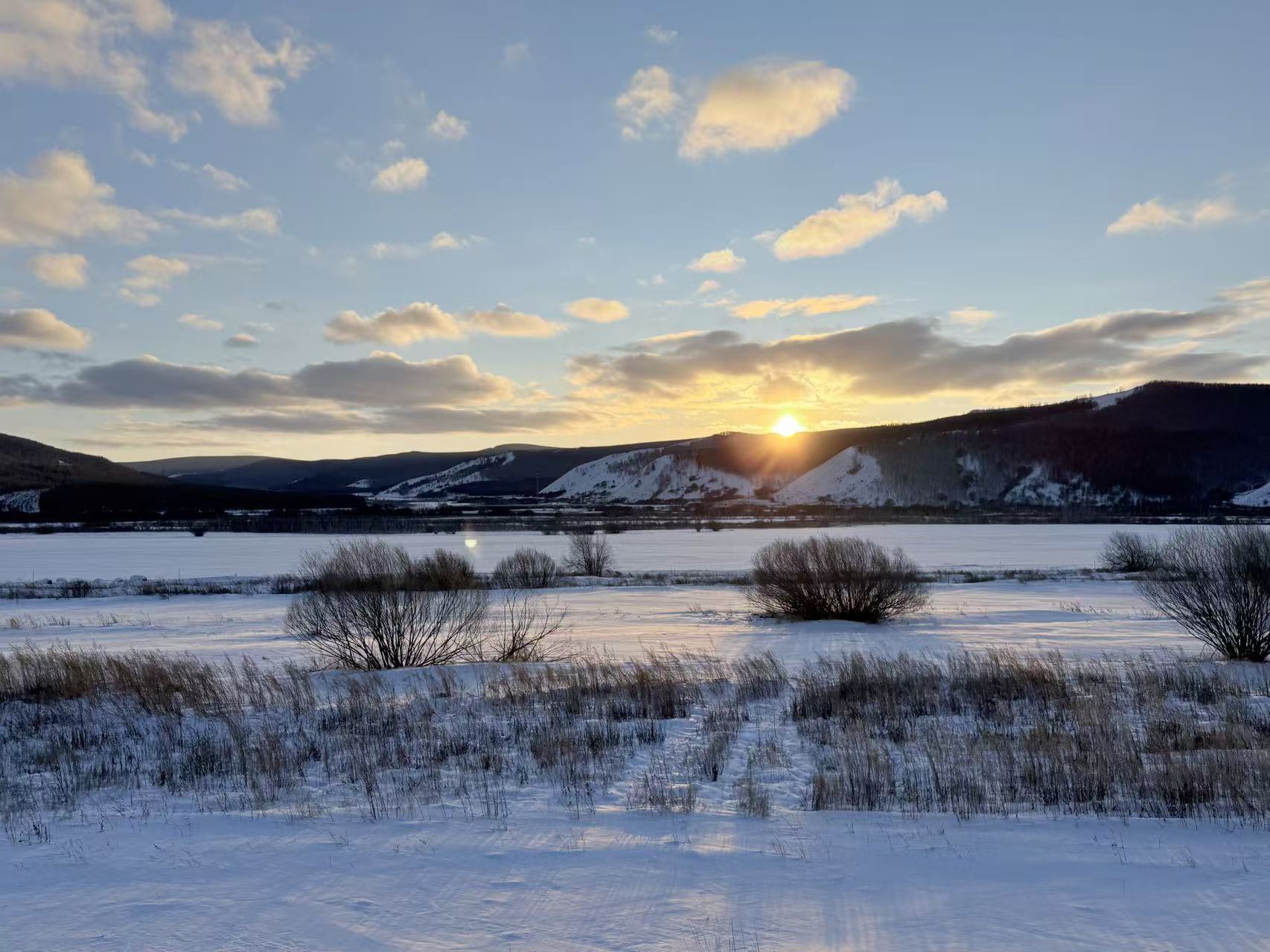 阿尔山日落雪景(你就说美不美?)