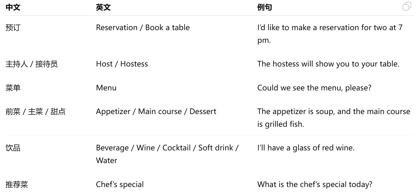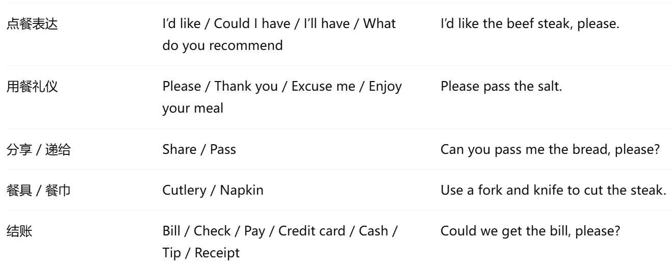 4. 餐厅小贴士 (双语 + 英文)