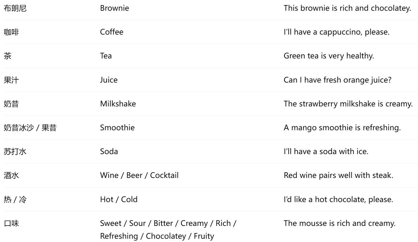 4. 甜点与饮品小贴士 (双语 + 英文)