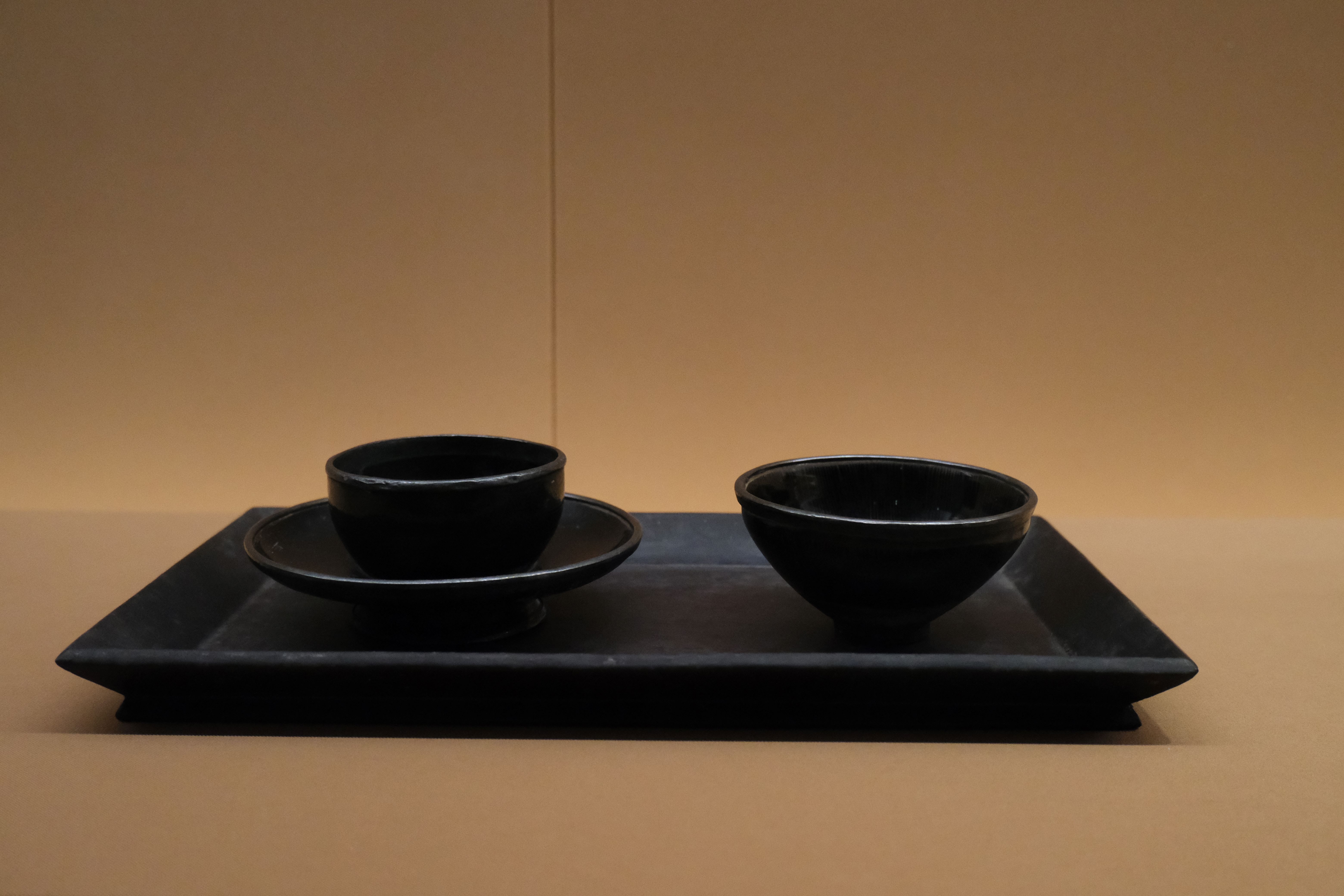 黑漆仿兔毫盏和盏托、黑漆长盘,南宋