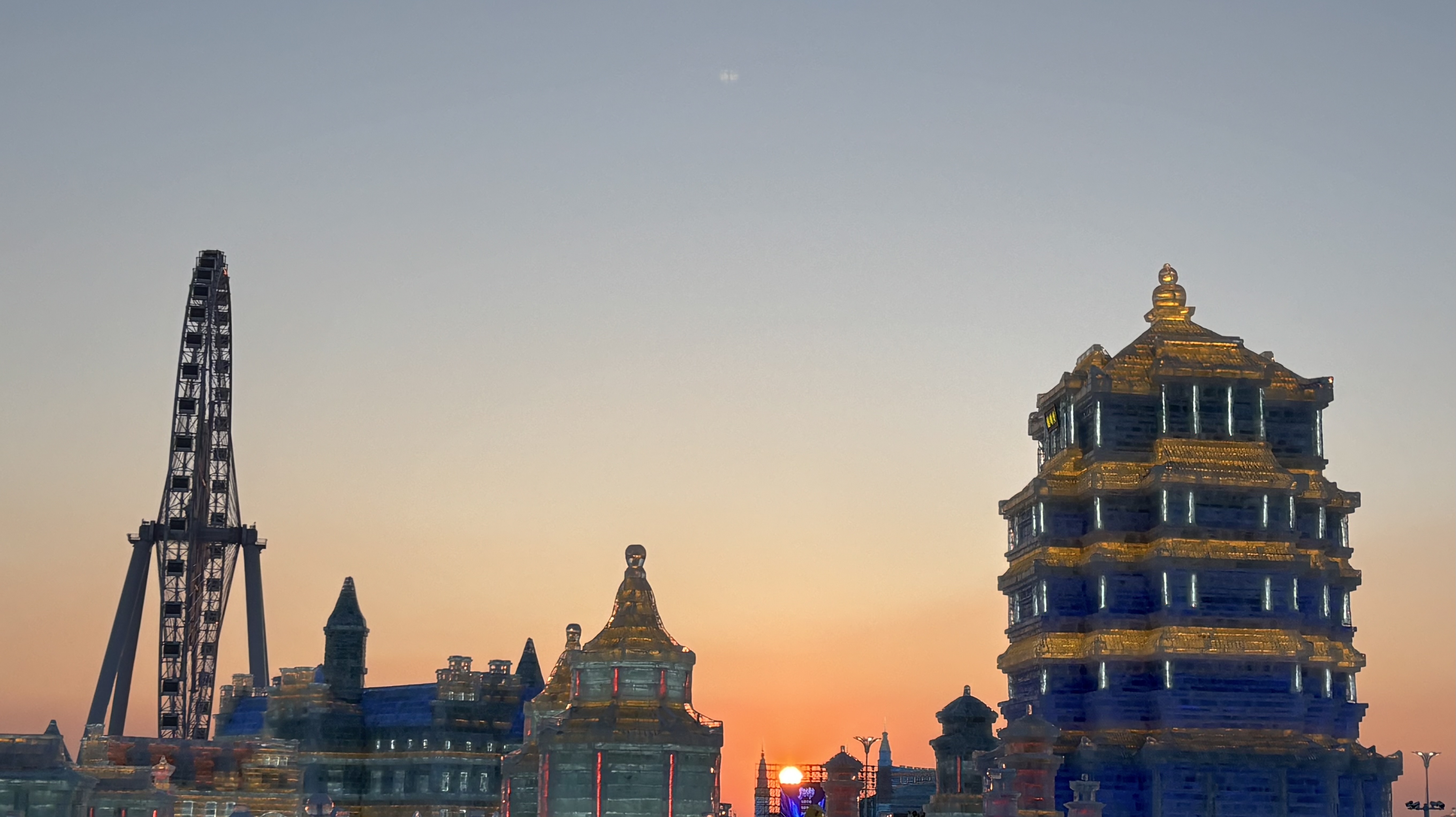 06:20 冰雪大世界(黄鹤楼冰雕、辛拉面冰雕;夜景更美;摩天轮看全景;大滑梯)
