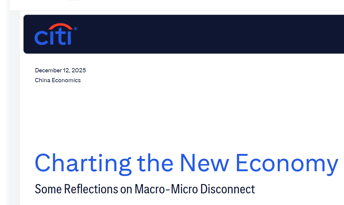2025年花旗最新研报《Charting the New Economy:Some Reflections on Macro-Micro Disconnect》指出,中美市场都在疯狂拥抱AI,但光鲜的科技繁荣背后,是宏观经济与微观民生的严重脱节——新经济能对冲房地产拖累,却带不来足够就业,消费者信心依旧低迷。