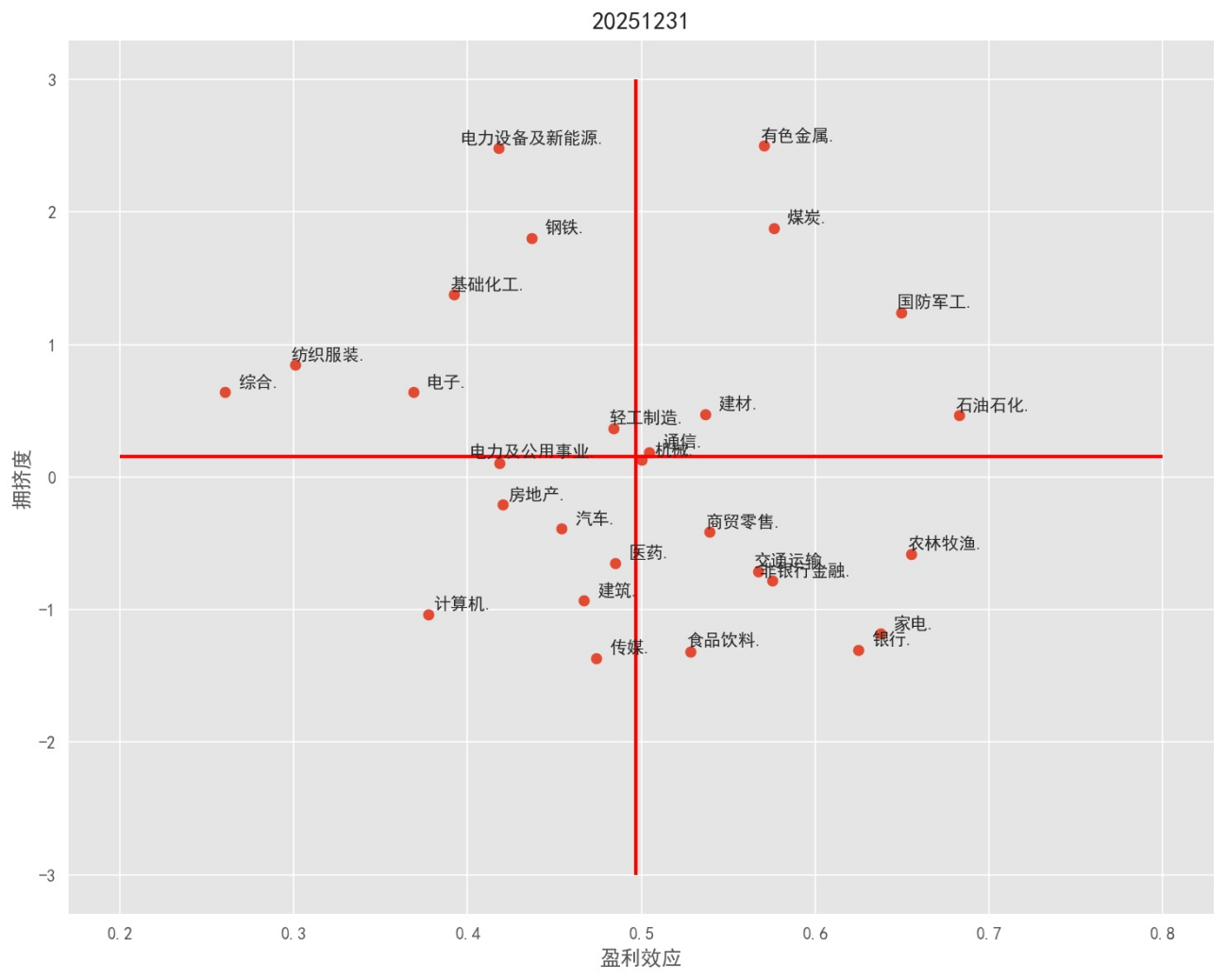 一级行业的盈利效应与拥挤度对比