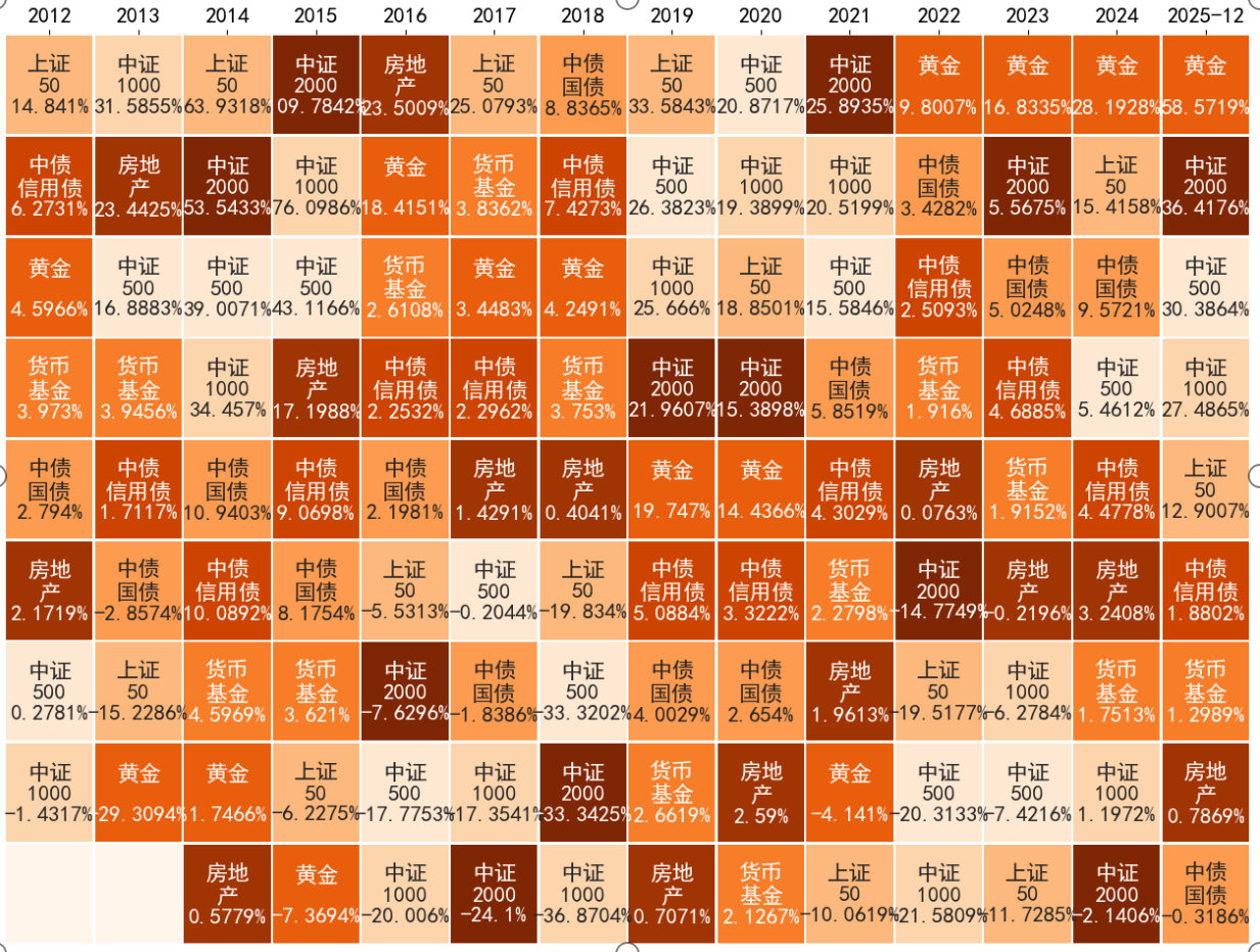 大类资产分年度表现