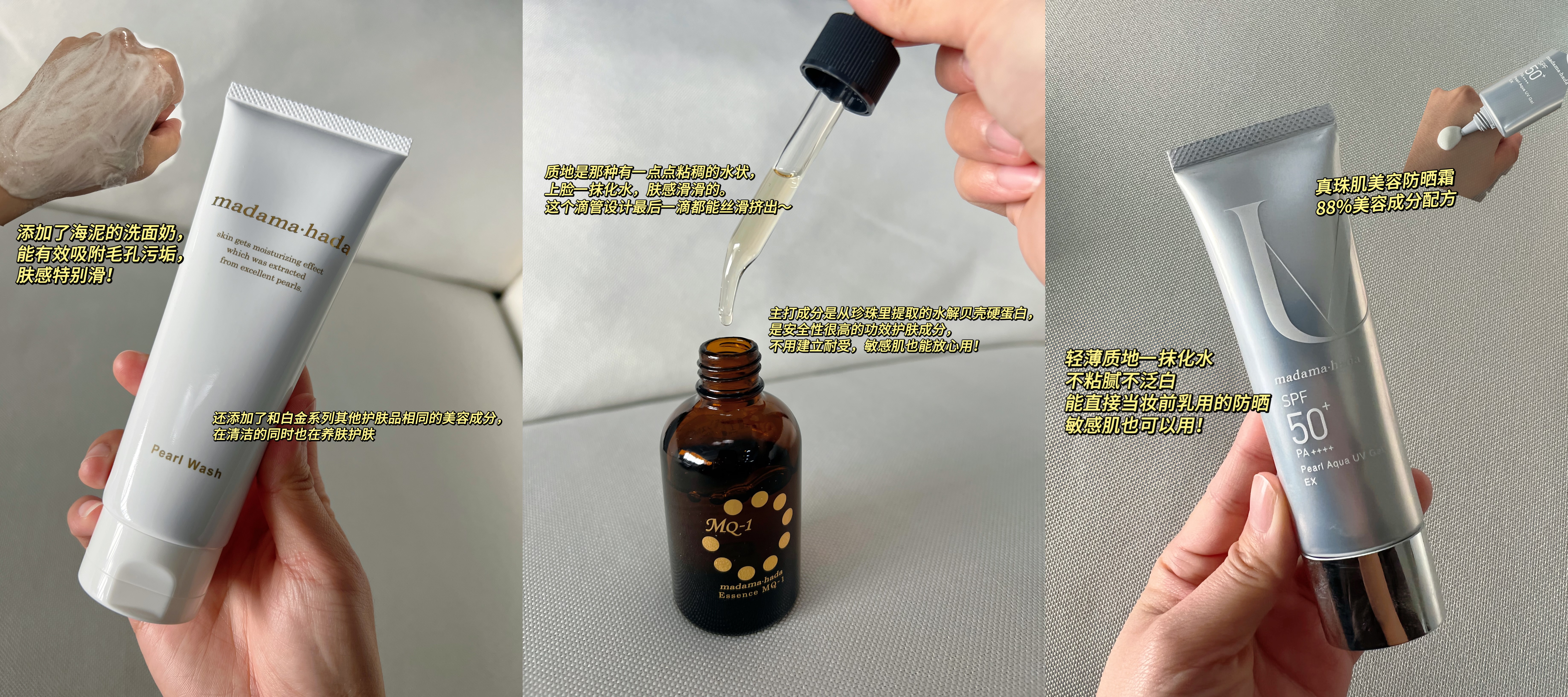 冬季节皮肤干燥,更要注意保湿和维稳,给大家安利真珠肌白金系列的珍珠精华液、洗面奶还有防晒霜。不管是换季泛红还是干痒紧绷,这套组合都能帮你轻松搞定,敏感肌冬日户外防护也稳稳拿捏!