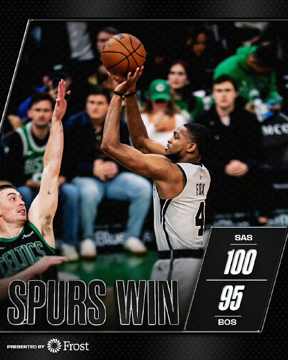 马刺和凯尔特人本赛季场均得分都在联盟前列,分别接近120分和118分,而两队本场比赛却只拿到了100分和95分。这种比分放到五年前简直不可想象,但在2025-26赛季的今天,反而成了一种奢侈的享受——纯粹的肉搏战,身体对抗、换防、封盖、抢断,处处都是硬仗的味道。TD Garden的气氛像季后赛,双方球迷都屏住呼吸,直到最后19.2秒文班亚马那记左翼中投几乎杀死比赛,随后马刺通过罚球将比分锁定在100-95,才终于把悬念彻底掐死。