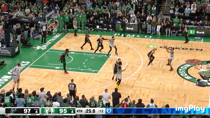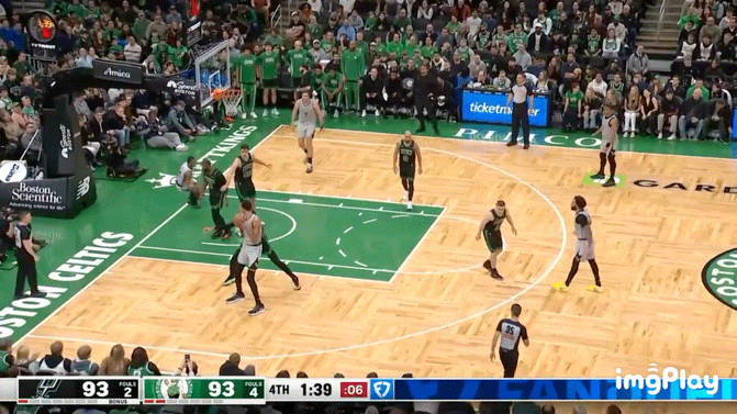 即便缺少塔图姆,凯尔特人依然是一支空间拉得非常开的球队,马祖拉最擅长的就是用外线火力和频繁的换位拉扯防守。但米奇显然不打算上这个当。马刺开场的防守策略非常克制:更多是退防、卡位、延误第一拍,而不是盲目上抢,这也是为什么比赛一开始节奏就被明显压了下来。