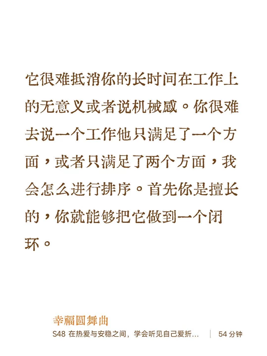 最打动人心的是,他分享了一个重要的发现:要么工作能同时满足你擅长、热爱且有意义的三个方面,要么就很难坚持下去。这个职场洞察,或许也能给你一些启发。