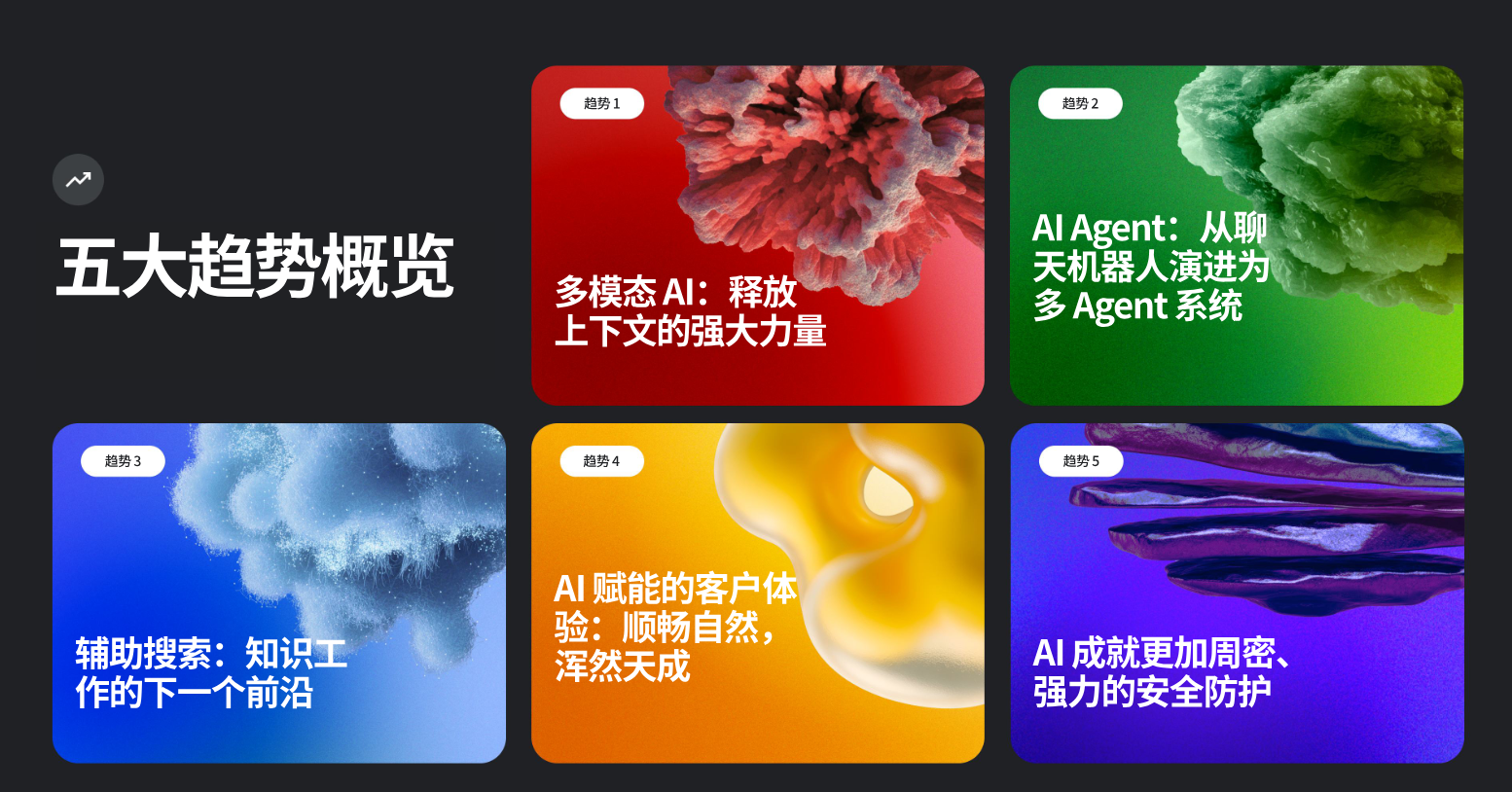 这场AI变革不是选择题而是生存题。企业要做的就是抓准趋势,用多模态AI释放数据价值,靠AI Agent提升效率,借智能搜索激活知识资产,让AI优化客户体验,以AI防护筑牢安全底线。未来已来,AI重塑商业的速度,只会比你想象的更快!