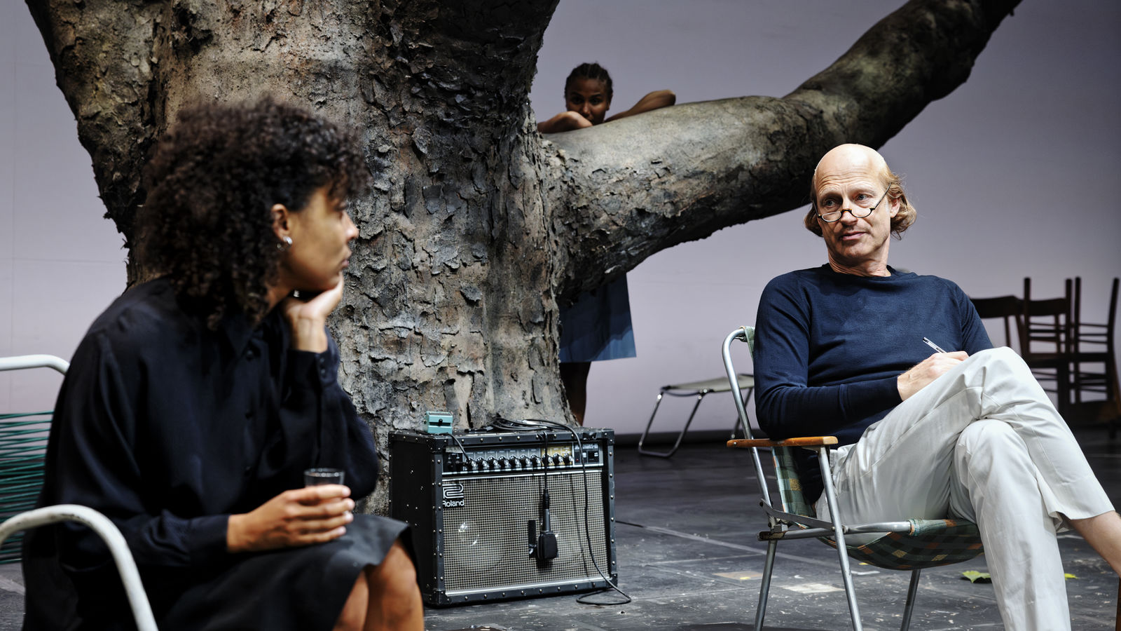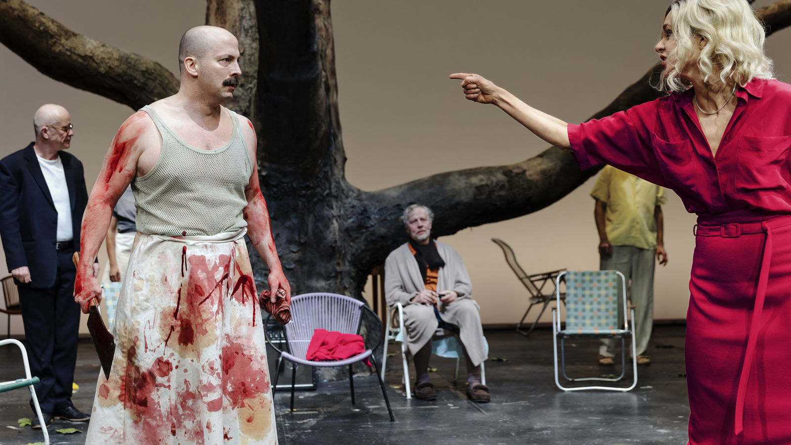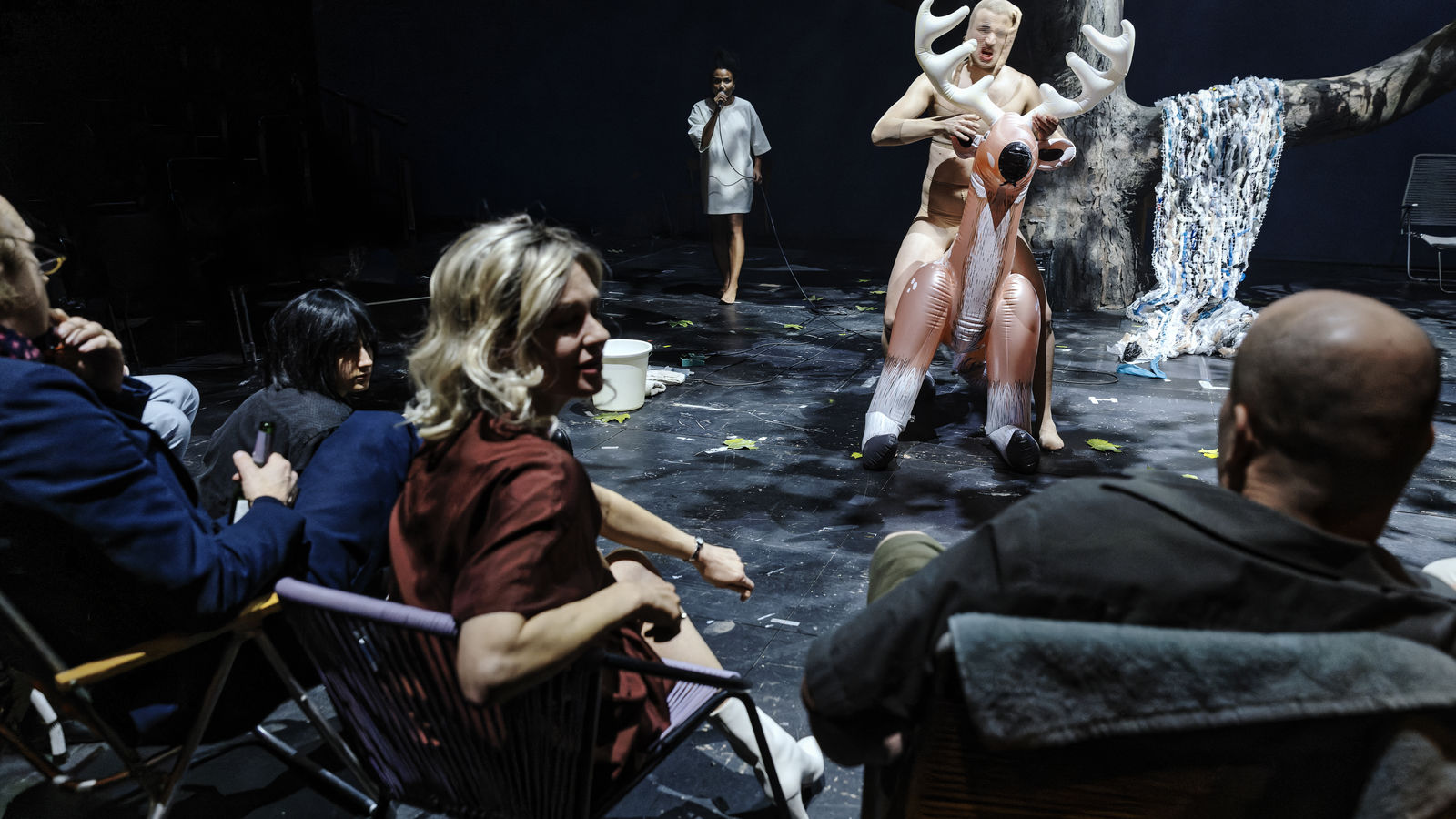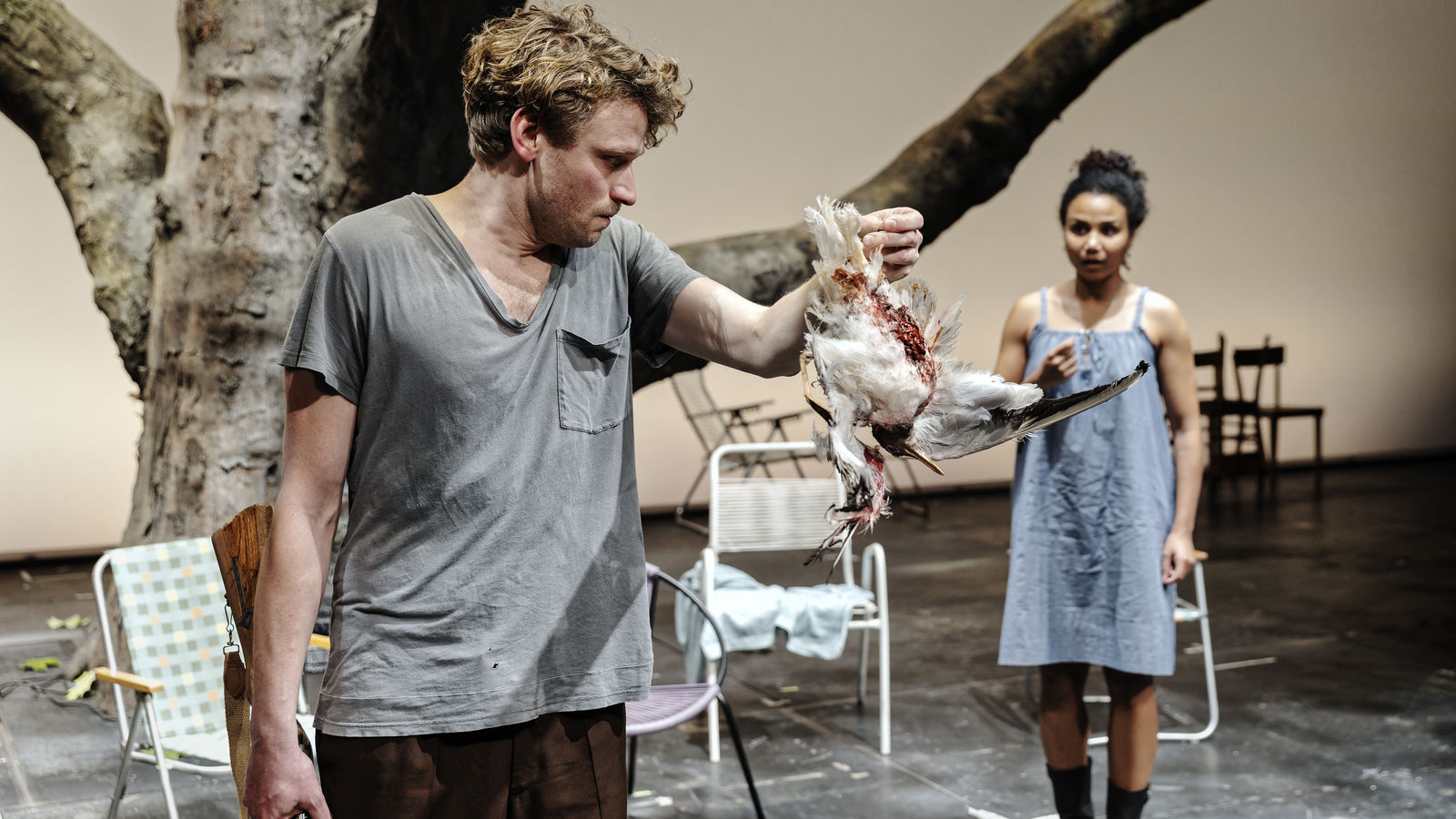"...因为我们身处的是契诃夫的世界——在那里,人物始终受苦于“现实”与“梦想”之间的差距;他们永远过于软弱,无法真正去过自己渴望的生活。因此,百余年来,我们一次又一次在观众席上看着他们在“未曾被活过的人生”里,被自己的梦想所扼杀。比如对幸福和真爱的梦想,或者对艺术的梦想——那些也许曾经无比宏大的梦想。就像契诃夫《海鸥》中那位著名女演员阿尔卡季娜的艺术一样宏大;而她的年轻儿子康斯坦丁(科斯佳)则徒劳地试图用自己的艺术与之抗衡。然而此刻,在柏林绍宾那剧院,这部名作在托马斯·奥斯特迈尔的执导下,以一种极具个人风格的版本重新呈现——即由演员集体完成的改编版,将文本与母题从俄罗斯的“某处”转移到了一个模糊的勃兰登堡——艺术也不再宏大,而是萎缩成一种毫无愿景的空洞喧响。而那些曾经要求艺术为他们绘制精神地平线、以此安放梦想的人,也早已堕落为一种落魄的小市民化教养资产阶级。在这里,地平线已经狭窄到几乎无法容纳任何开阔的思想与情感...""...我们在绍宾那看到的是一组被精心推向漫画化的角色:他们一方面在演契诃夫,另一方面也以讽刺的方式反问自身的行为——我们到底在这里演什么?又是如何在演?戏剧究竟还有多大的现实意义?那位备受赞誉的作家特里戈林曾这样说:“从未有过这样艰难的时刻,想要产生任何影响!”在当晚的另一处,他还向观众展示了自己艺术生产的“工作室”:如何在索引卡片上,把对世界的陈词滥调式印象拼装成一部又一部雷同的书。意思很明确:以这种方式,艺术当然不可能获得任何现实相关性...""...观看这一切依然令人愉悦——尤其是因为作品中那种强烈的自我反讽:高贵的戏剧传统被直接丢上了大型垃圾堆,任人嘲笑。真正的树和契诃夫,某种意义上正是Schaubühne的DNA——自从1984年彼得·施泰因与舞美设计师卡尔-恩斯特·赫尔曼在《三姐妹》中把那片传奇性的白桦林搬上舞台以来便是如此。扬·帕佩尔鲍姆与托马斯·奥斯特迈尔把昔日那种肥大化的现实主义,拉回到一个在花园椅与泡菜罐之间的世俗当下。赫温·特金饰演的玛莎,用泡菜罐里的醋水完成了当晚为数不多的真正艺术技巧之一——一个小型“口腔喷泉”的把戏..."
