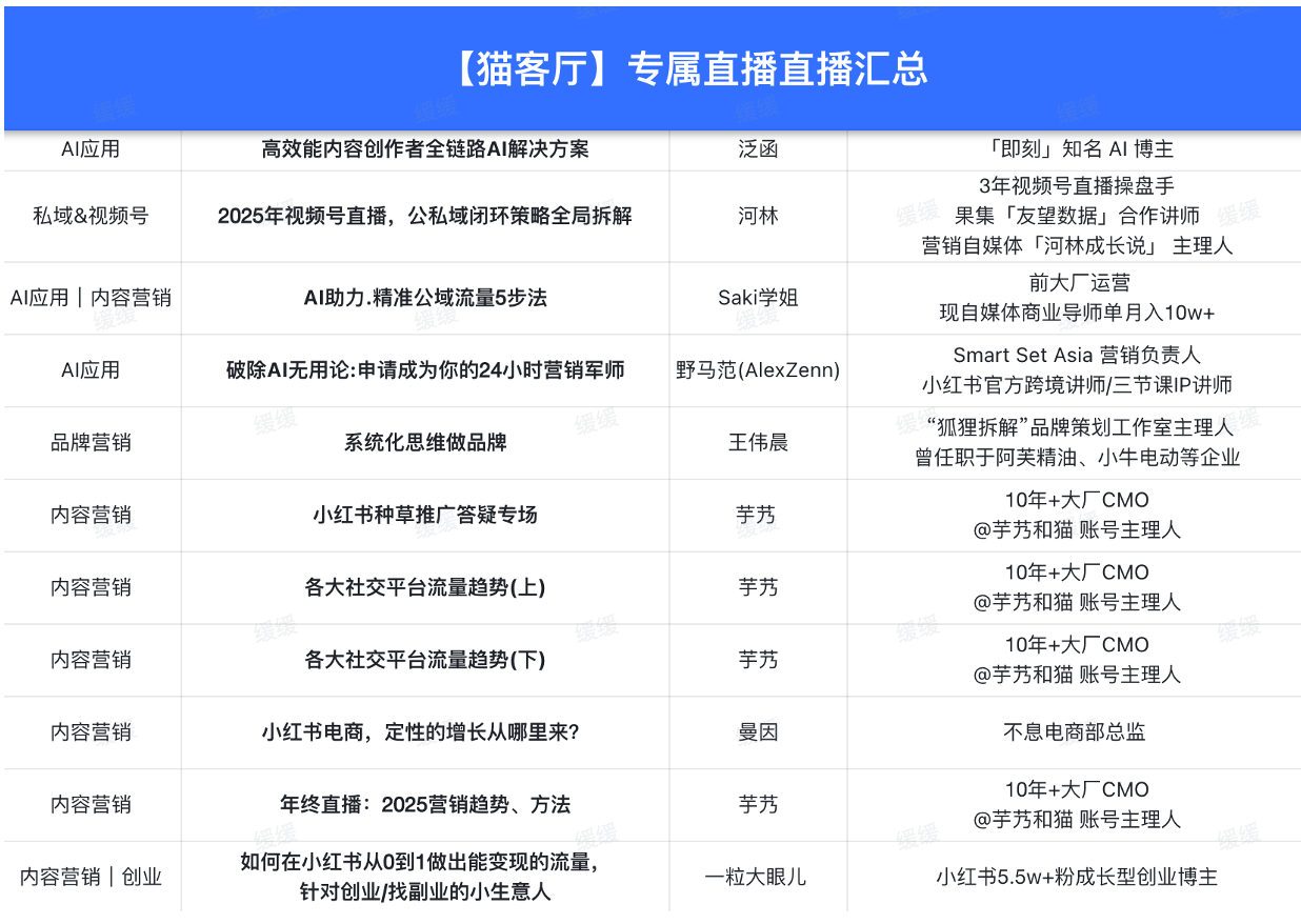 如果你也认同这种学习方式,也想在新的一年,保持不断向外看、向外学习,欢迎加入我们猫客厅的会员,在线上和更多优秀的mkt同行一起,开启一整年的学习+交流——
