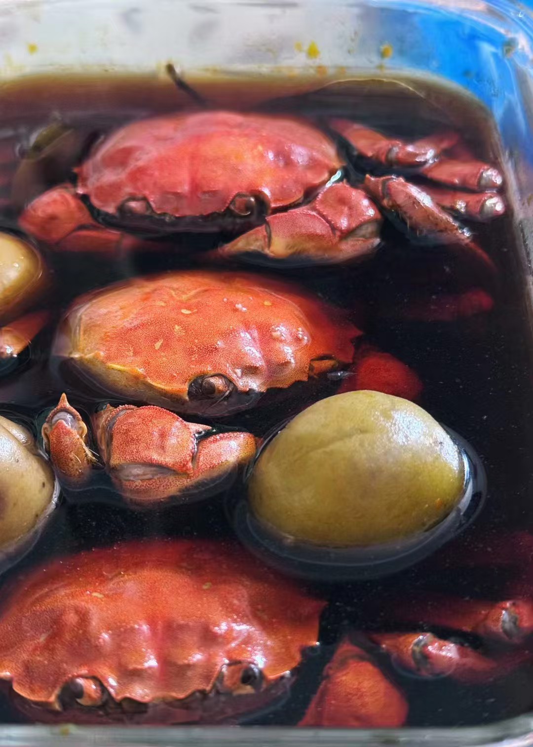 🍂 秋:大闸蟹季的灵魂拷问:吃蟹要不要蘸醋?80后坚持“传统米醋+姜丝”,配图里那只醉蟹,最后抢着吃完。