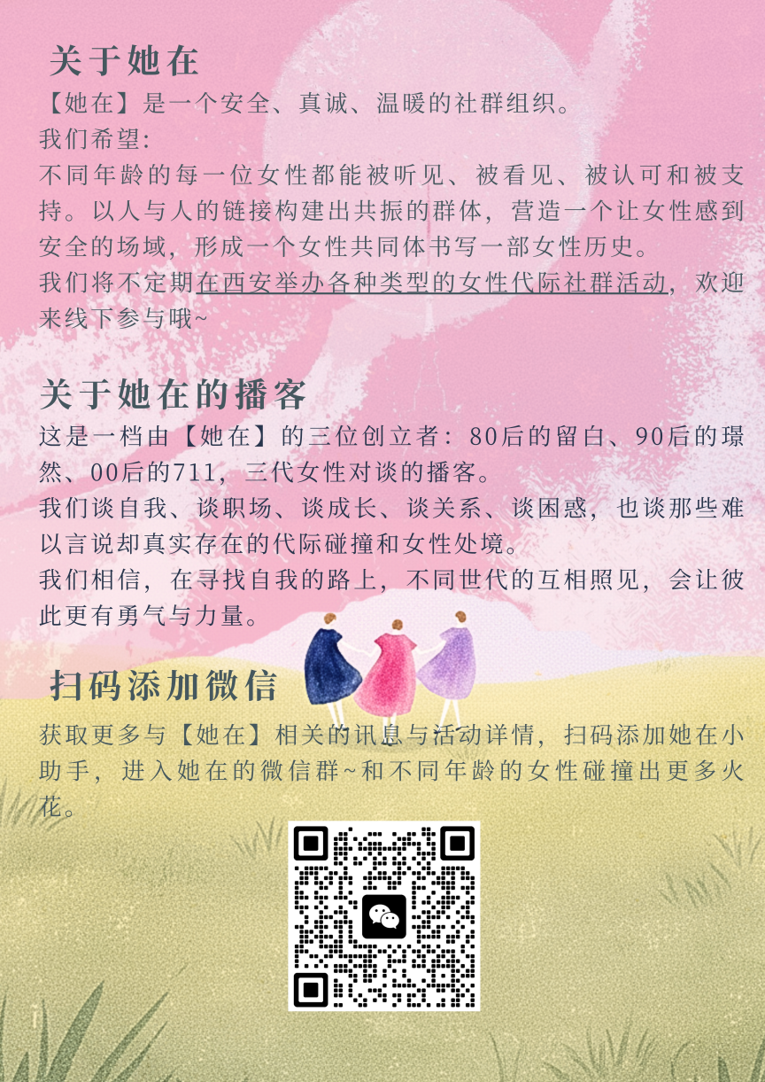 如果你对本期话题或本节目有任何想法或问题,期待大家在各收听平台评论区留言,或者在小红书@她在 与我们互动哦~