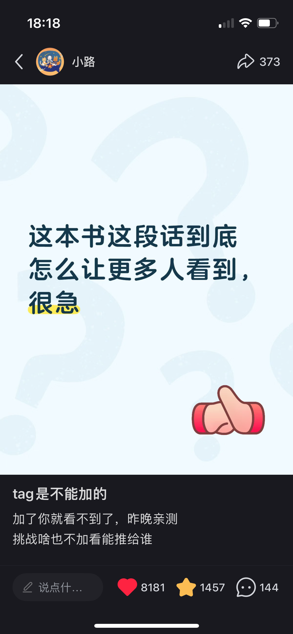 你好,我是小路,感谢你点进我的播客。抱歉这句开场白今天没录进去。本期灵感来自我两天前发的一个帖子,小爆了一把,内容如下: