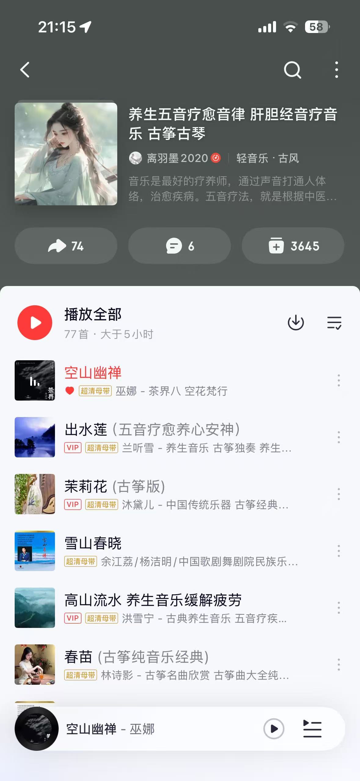 里面的古风音乐都非常适合打八段锦,节目里推荐的两首曲子就是《空山幽禅》和《阳关三叠》。