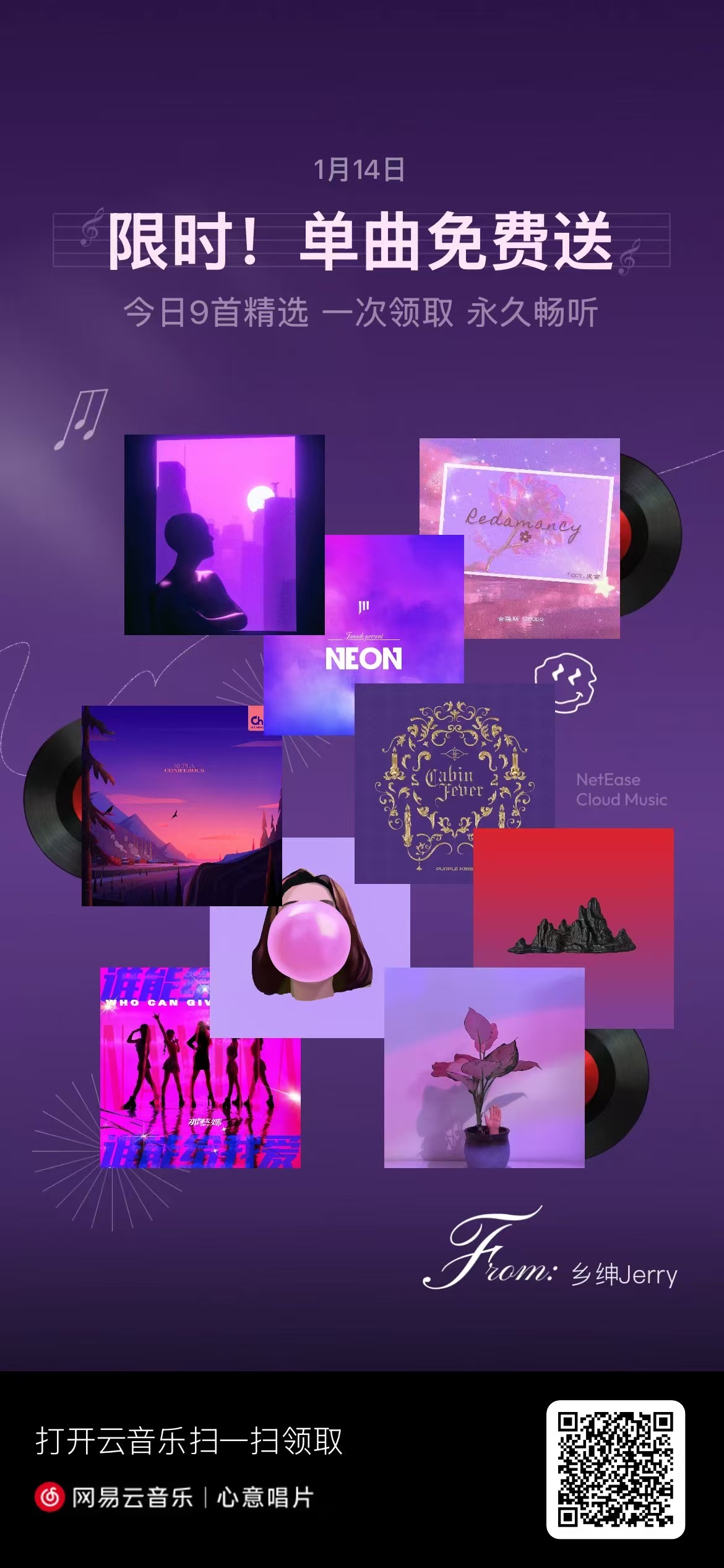 今日网易云的”心意唱片“也送给大家~