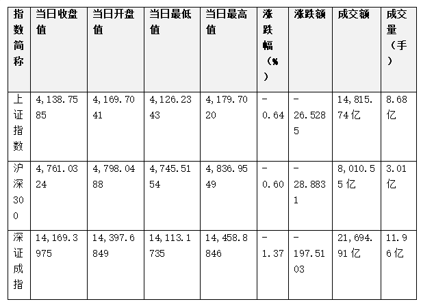 2026年1月13日,A股市场呈现“量价背离”特征,成交额近3.7万亿元刷新历史新高,但指数端表现分化。截至收盘,上证指数收跌0.64%报4138.76点,深证成指下跌1.37%报14169.40点,创业板指领跌1.96%报3321.89点,科创50指数跌2.8%报1469.57点。全市场超3700只个股下跌,占比72.3%,跌停个股超90家。