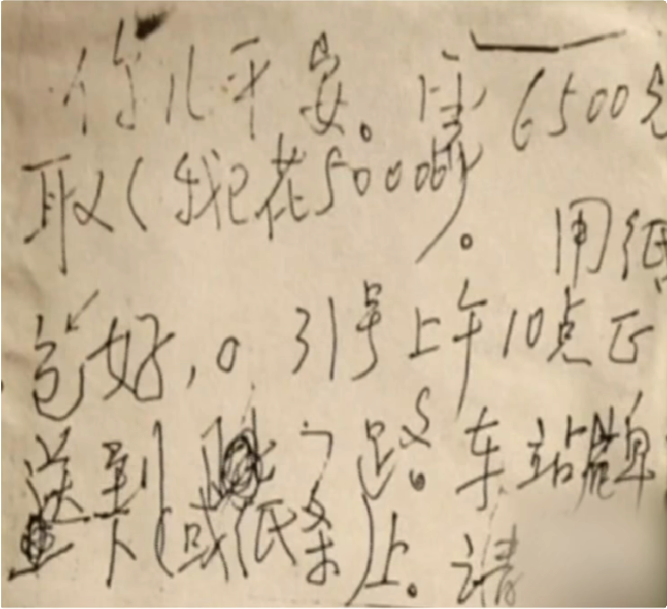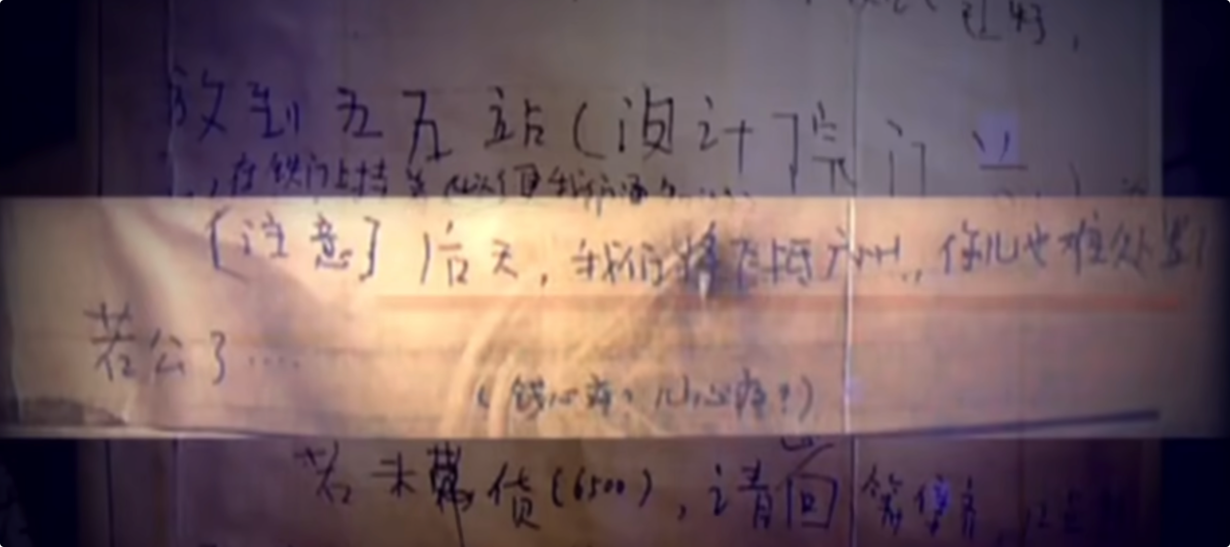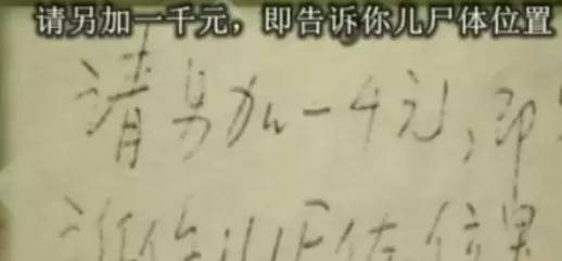 经过几番折腾后的第十六张字条,上面要求再加 1000 元,即告诉你儿尸体位置