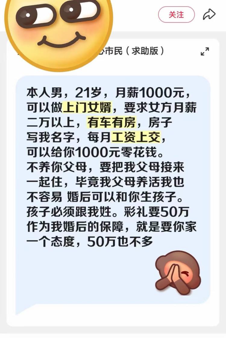 当越来越多的男性开始把“入赘”写成一套清晰的条件与价格,婚姻还只是情感的结合吗?彩礼“倒过来要”,看似是性别角色的反转与觉醒,实则也让婚姻更像一场被精确计算的交易。男性在家庭中的位置、尊严与责任,正在被重新讨论、重新标价。但这种把条件与代价摊开来谈的过程,本身也体现出一种有限的进步与宽容——关系不再只靠默认承担,而开始允许不同选择被看见、被讨论。